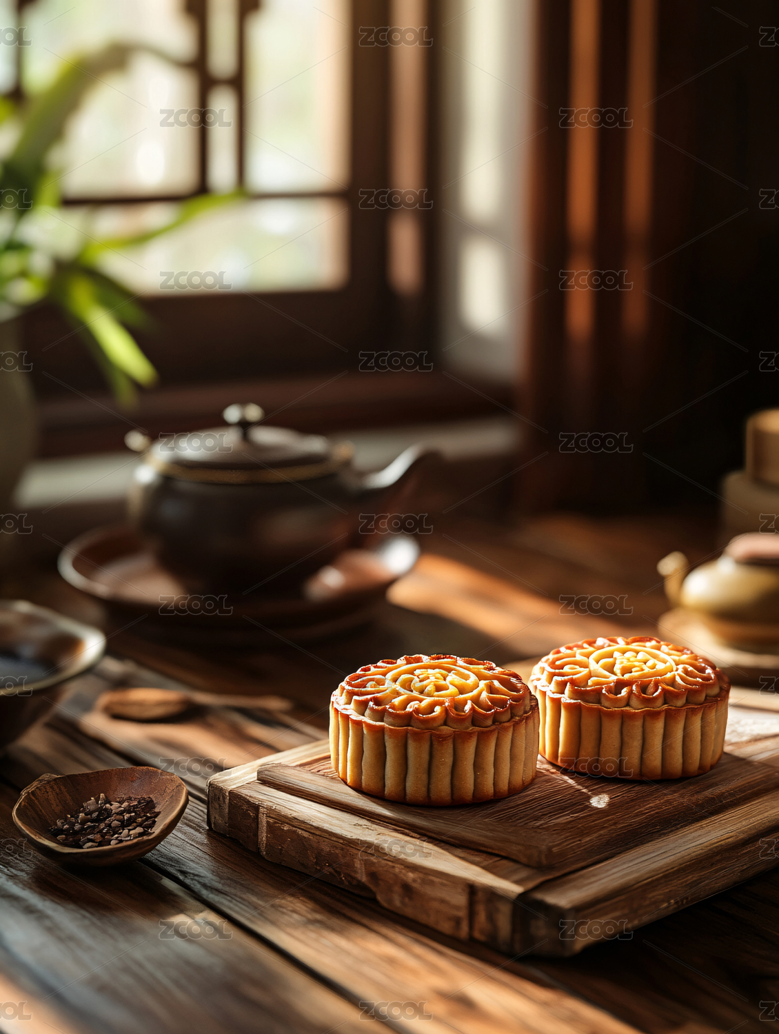 月饼,中秋节,茶具,茶壶,茶杯,茶点,中式,传统文化,节日,美食