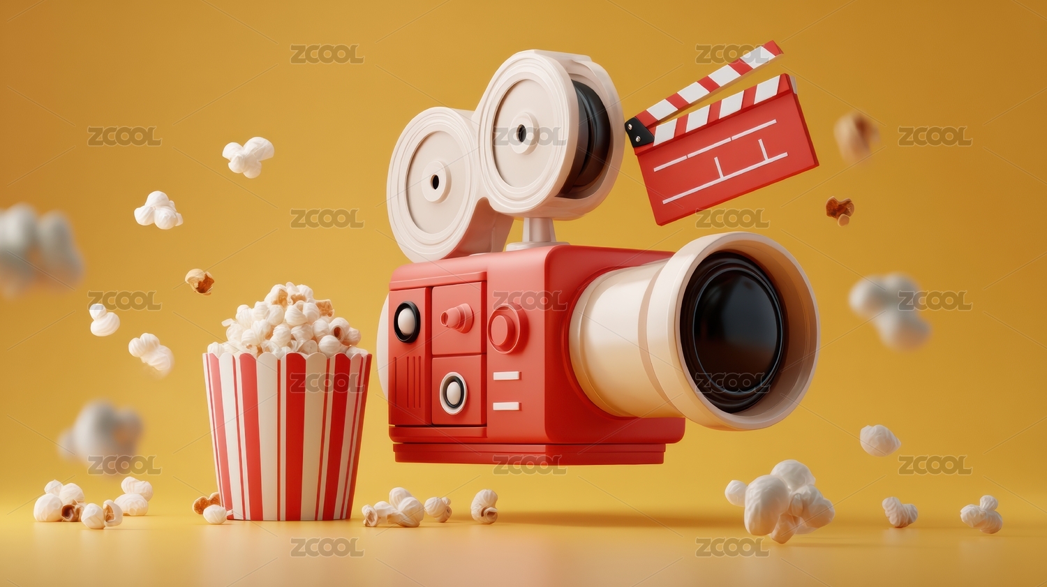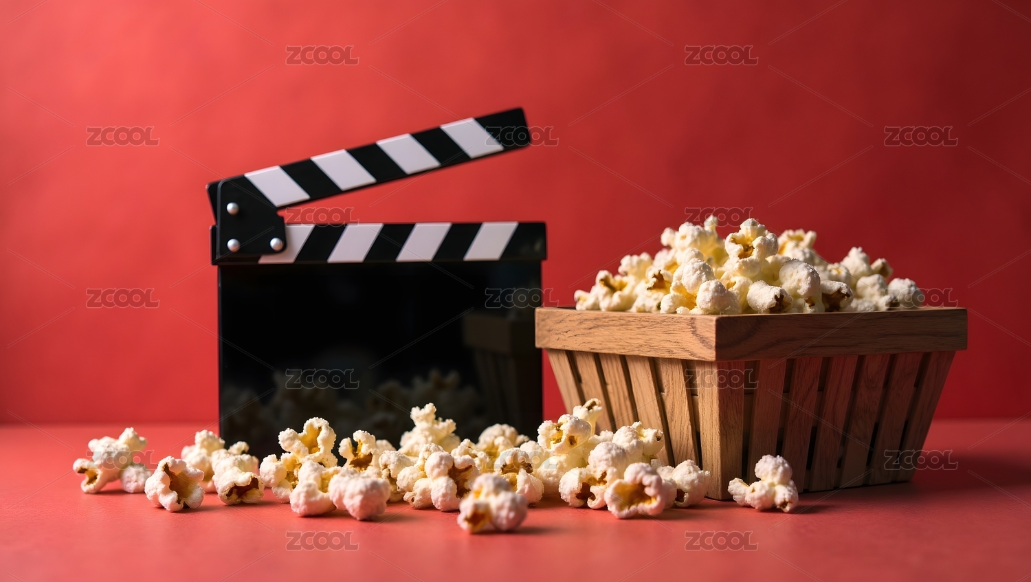 红白爆米花桶银色卷轴黑色眼镜插画背景