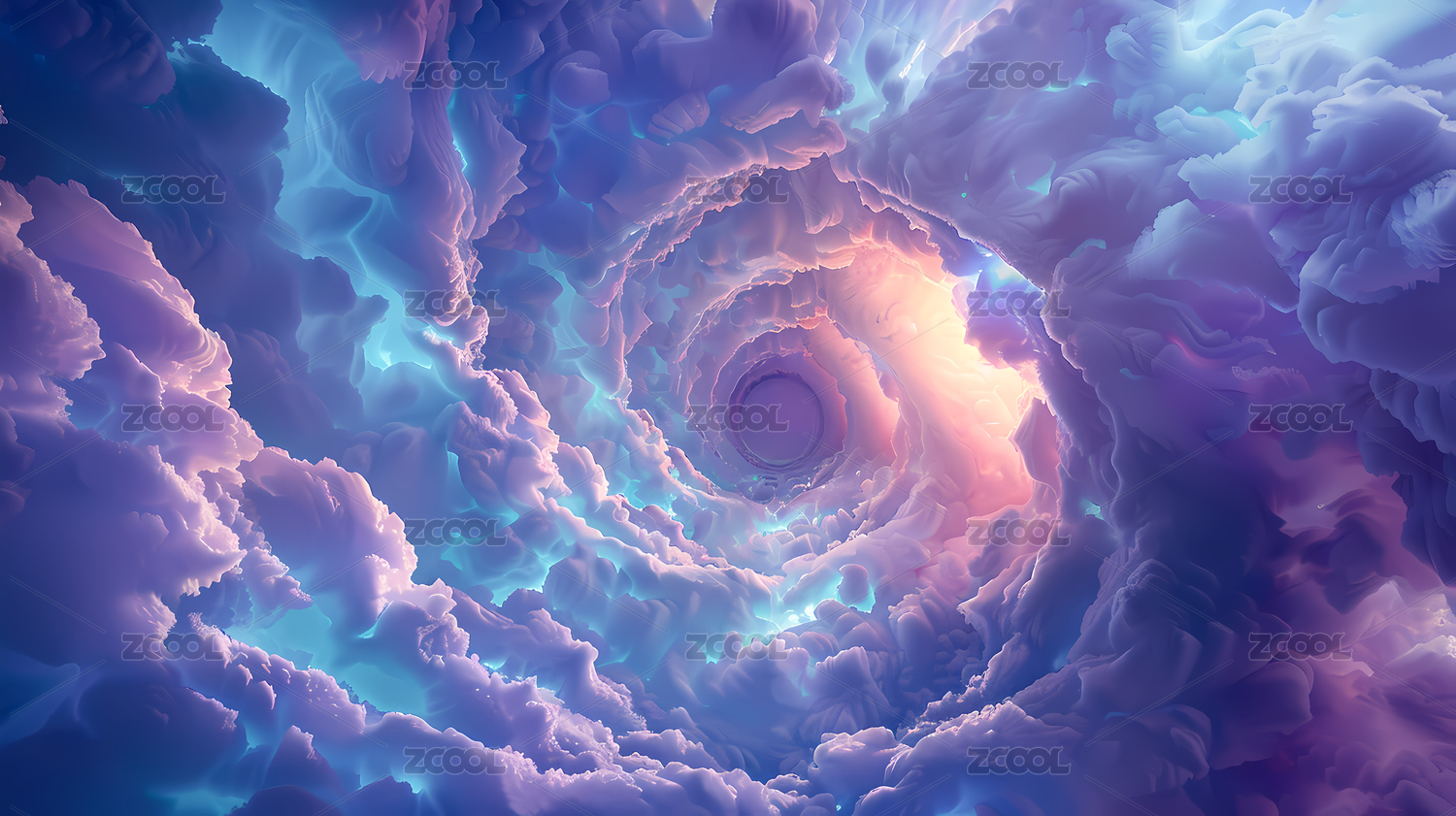 梦幻云层隧道紫色光芒闪耀