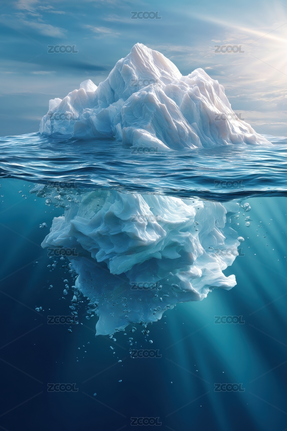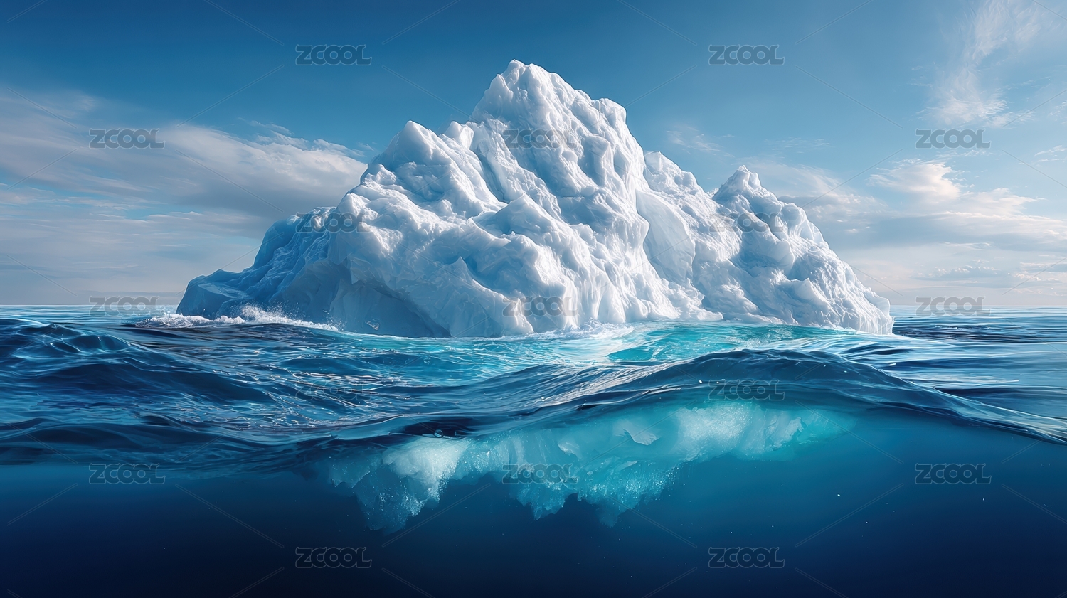 冰山浮于海面水下部分隐约可见