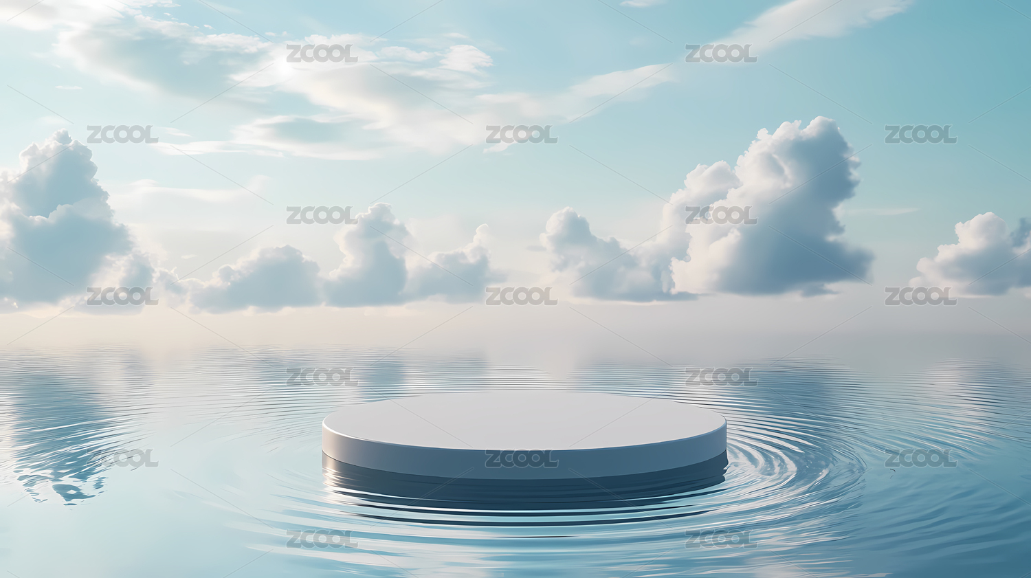 平台,水面,白色,涟漪,圆形,展示,极简,漂浮,天空,蓝色