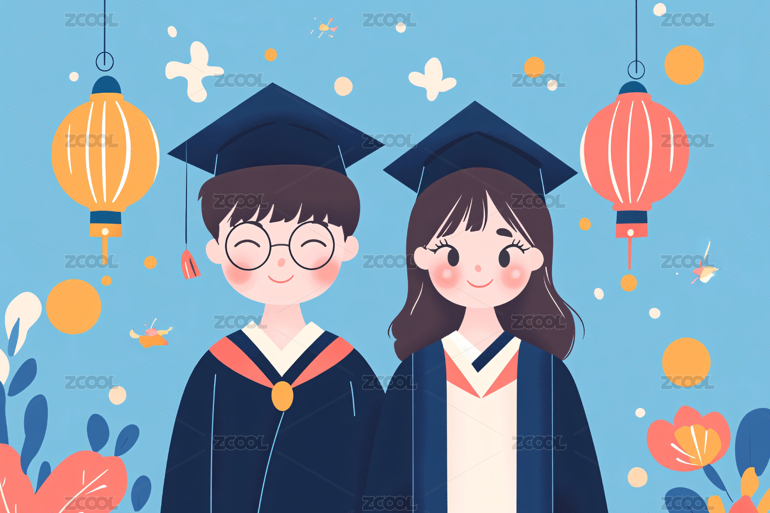 梦幻唯美毕业季毕业旅行五四青年节场景插图