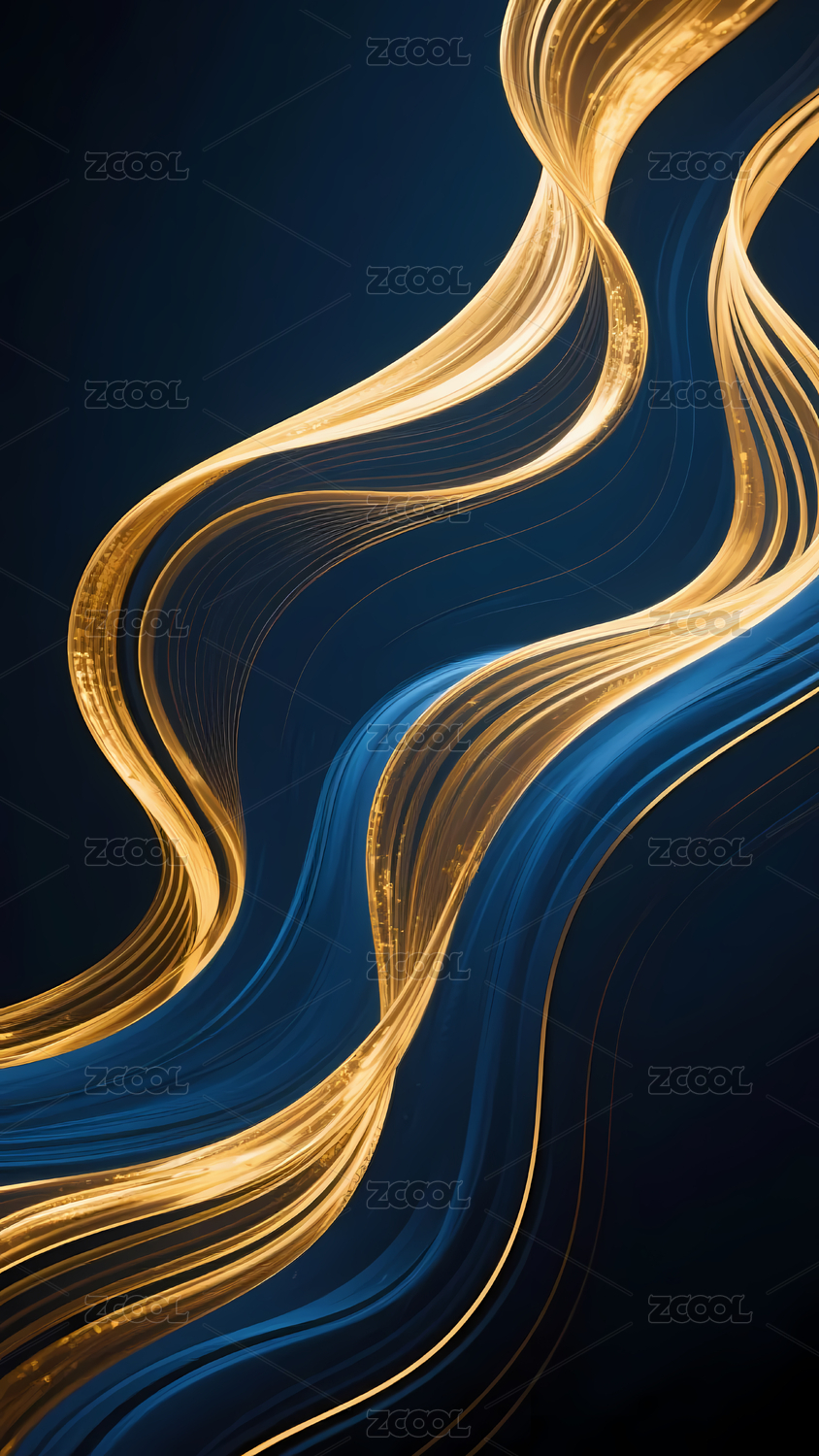 金色波浪线条与深蓝背景
