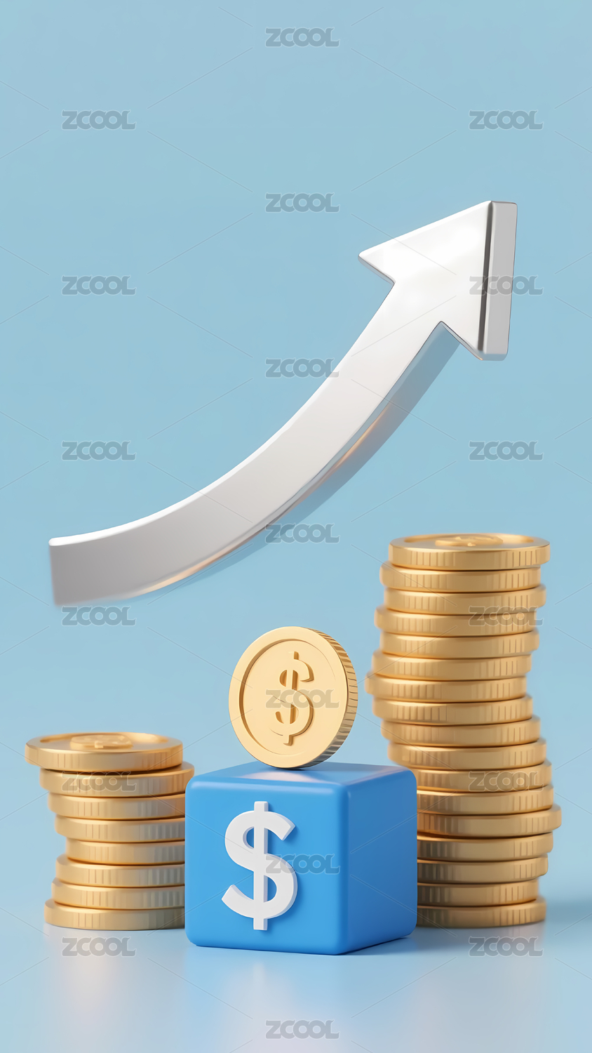 蓝色,背景,财富,美元符号,金色,硬币,白色,增长,简洁,钱袋