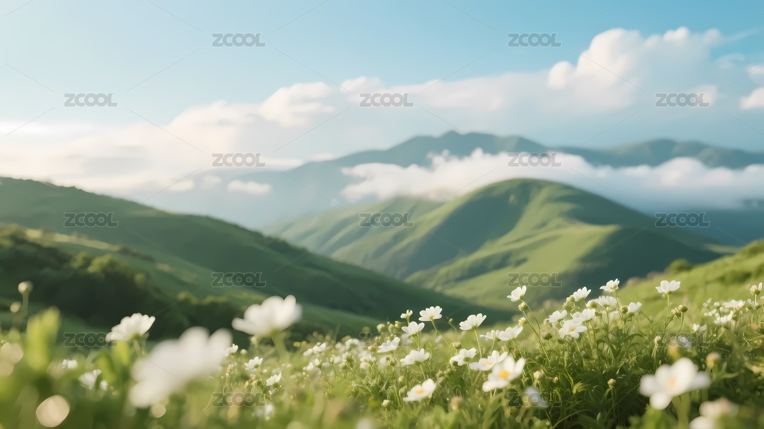天空,自然,宁静,渐变,绿色,花朵,清新,白色,光线,山丘