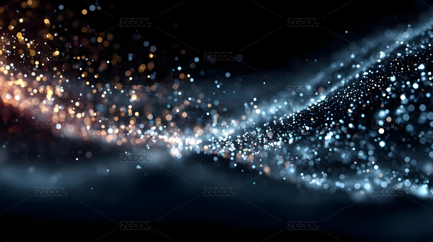 蓝色,橙色,光点,渐变,波浪,深蓝色,梦幻,流动,视觉,光斑