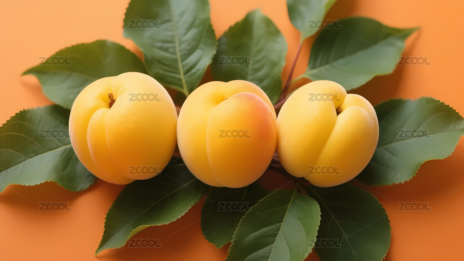 黄色杏子与绿色叶子