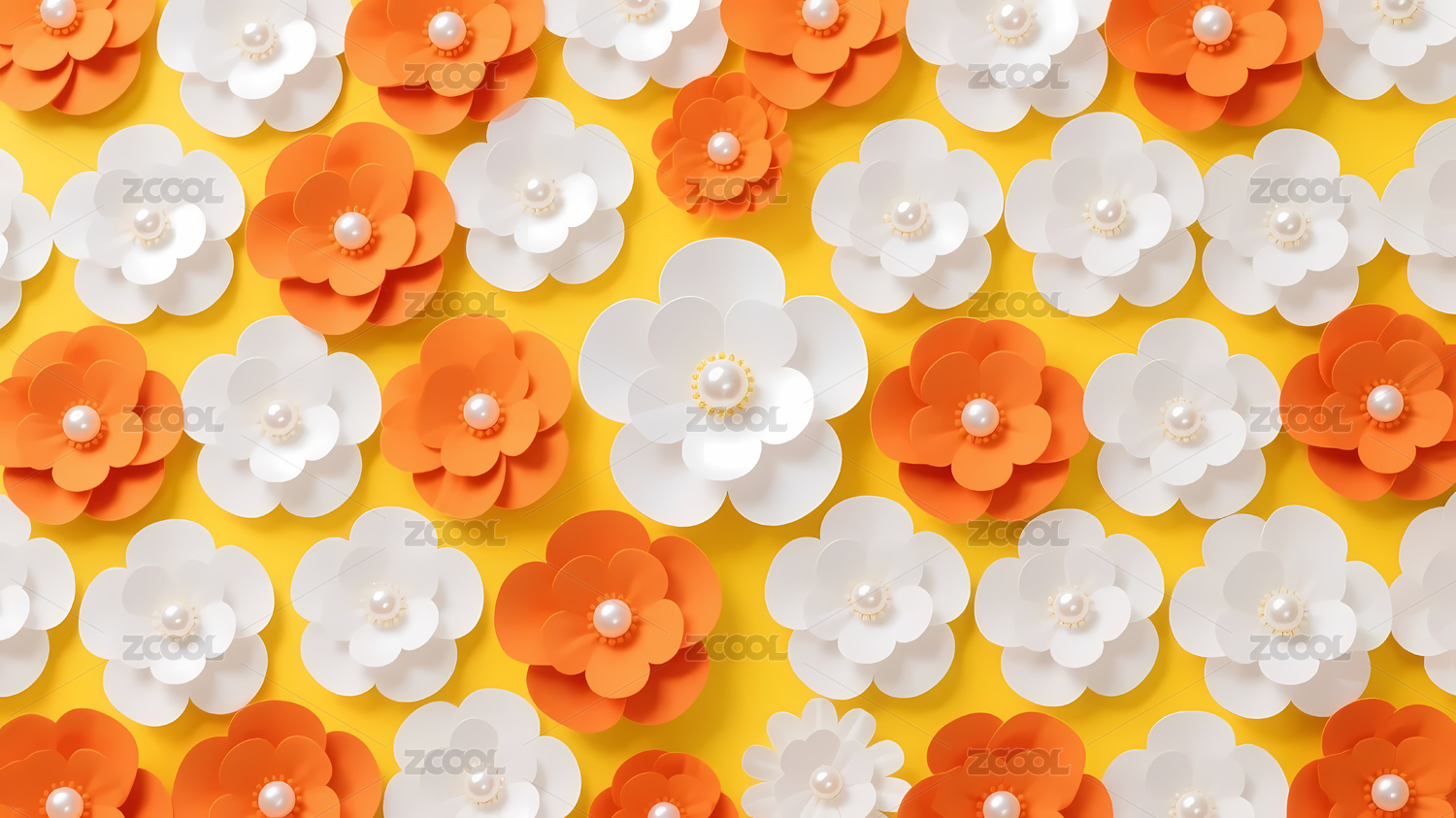 黄色背景珍珠纸花