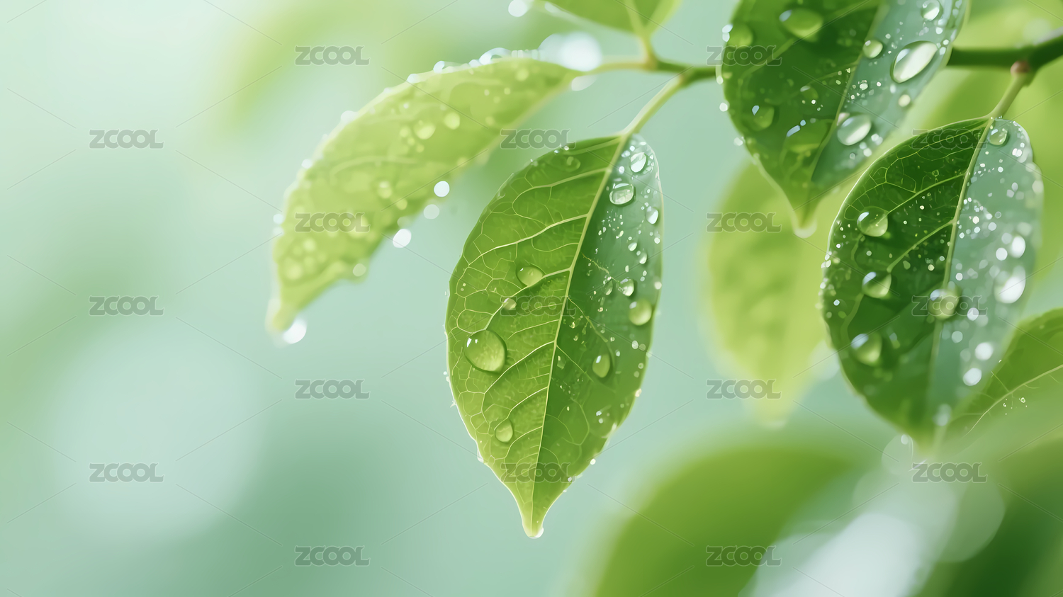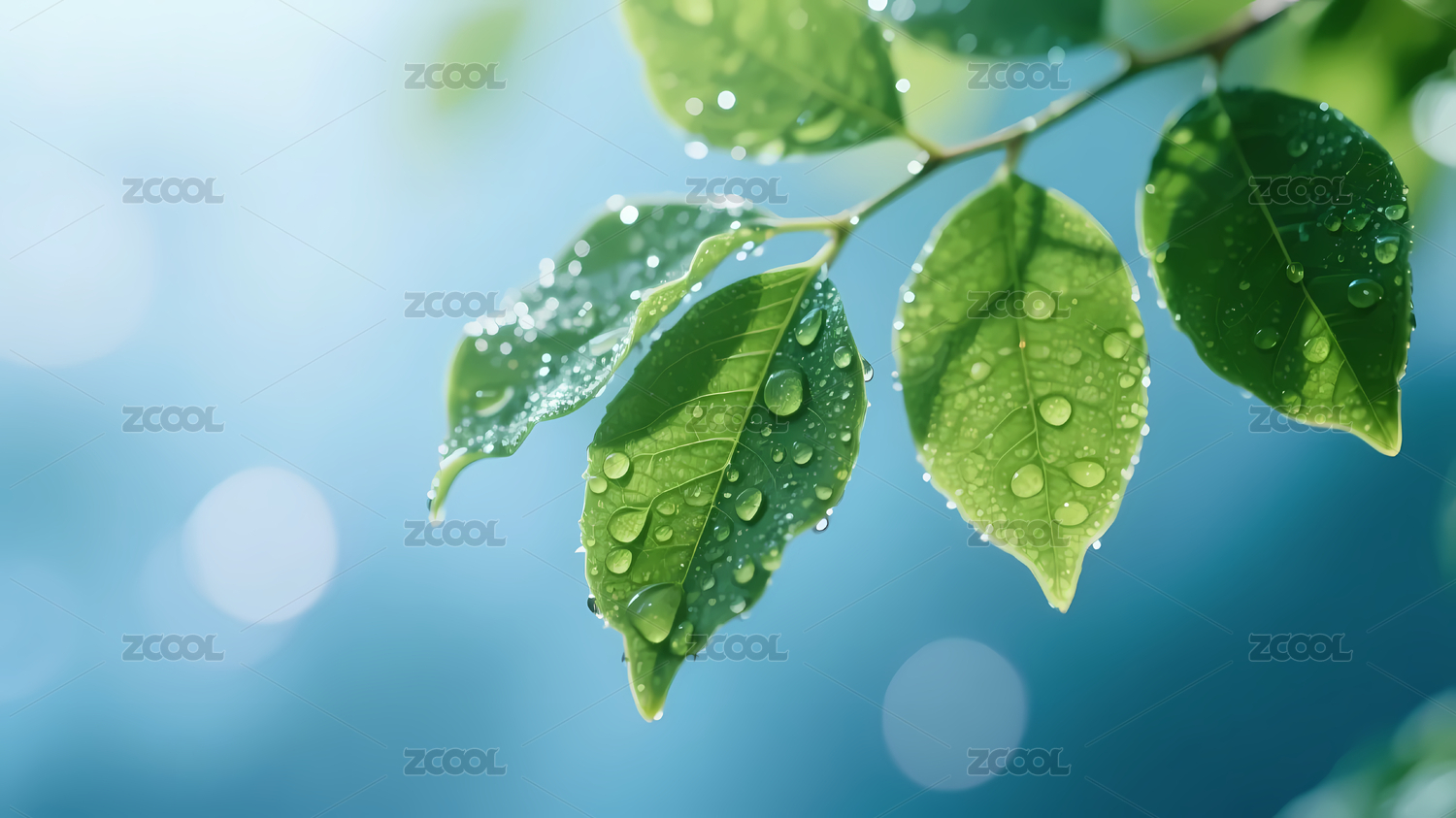 蓝色,叶子,水珠,绿色,光斑,清新,自然,植物,白色,晶莹