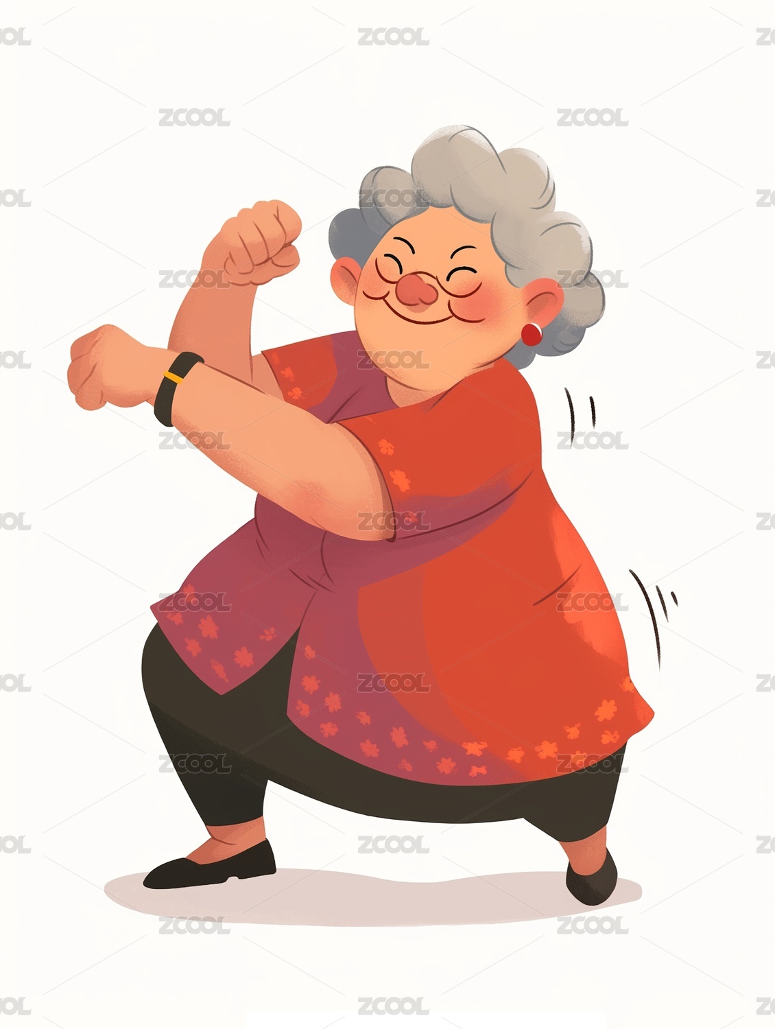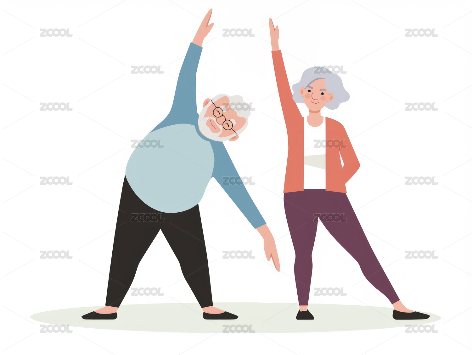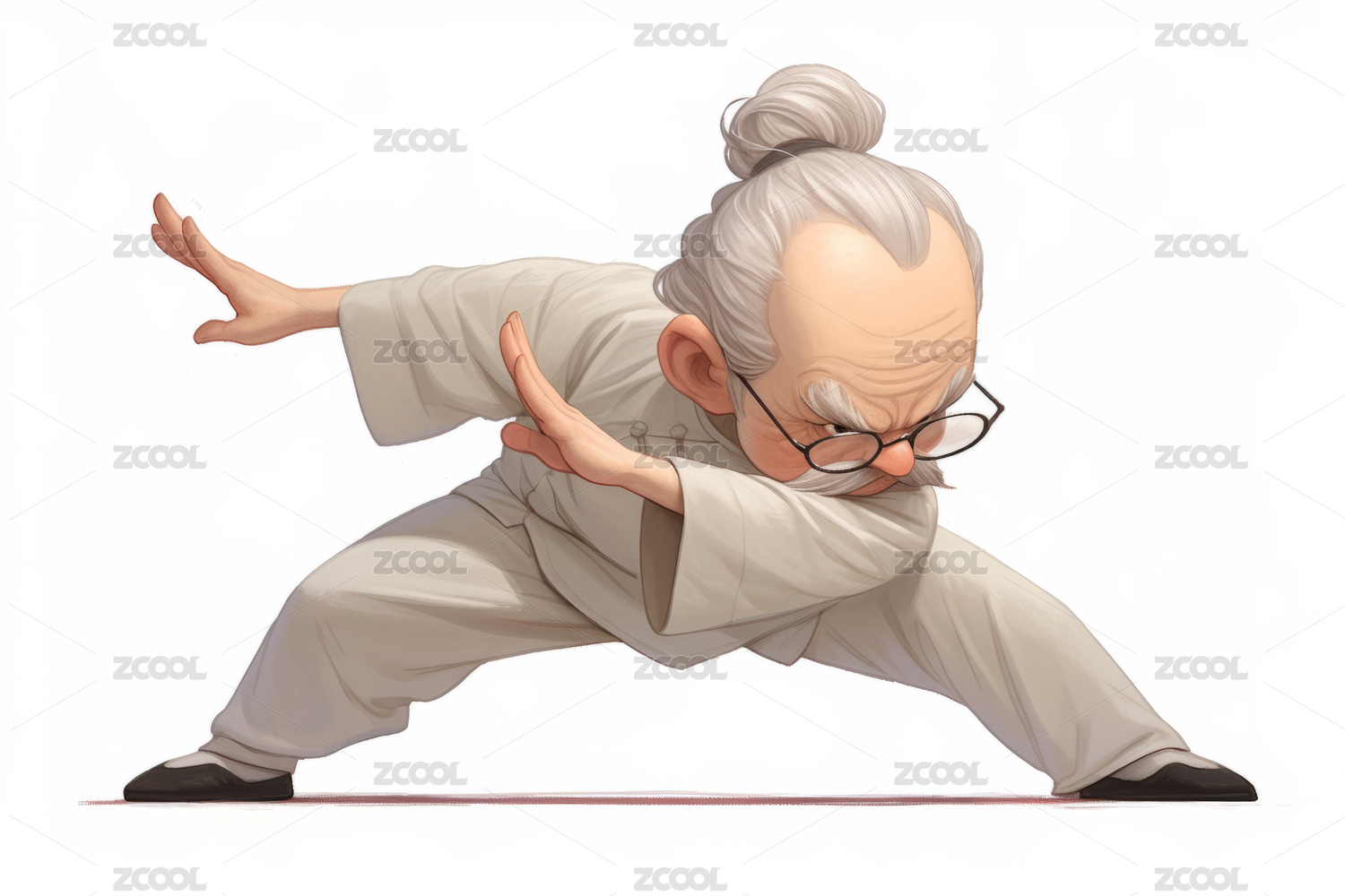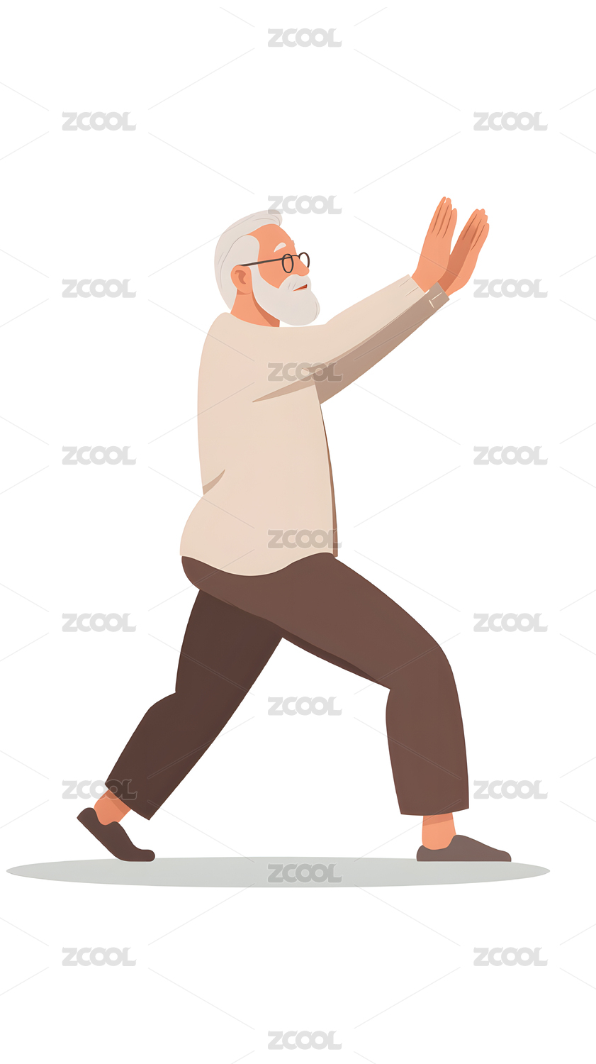 两位老年人在打太极 可爱风格重阳节老年人健康生活插画