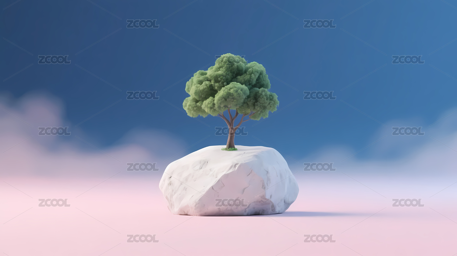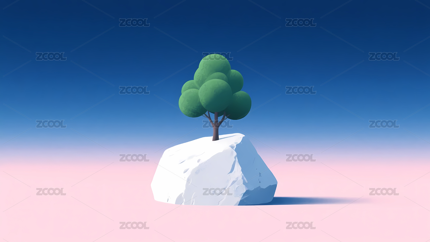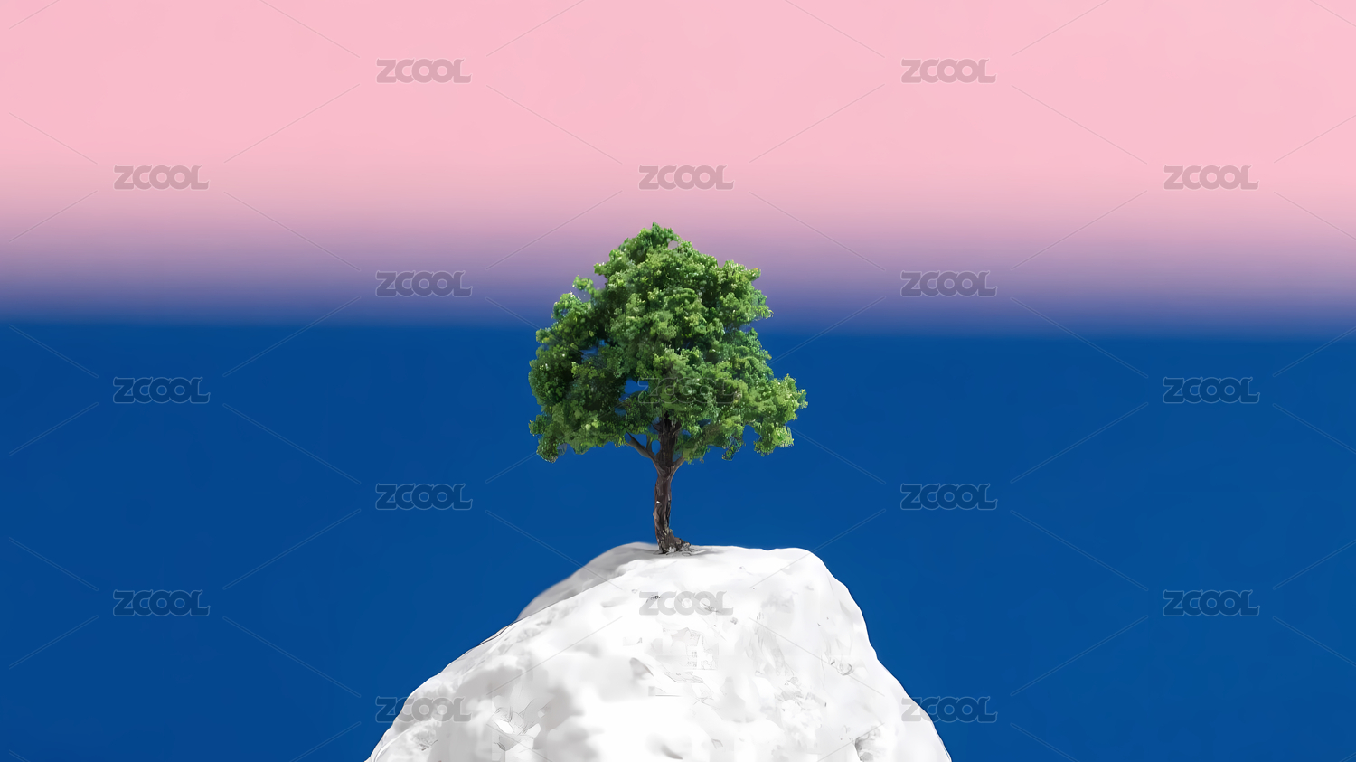 树木,绿色,蓝色,自然,清新,粉色,小树,渐变,生长,岩石