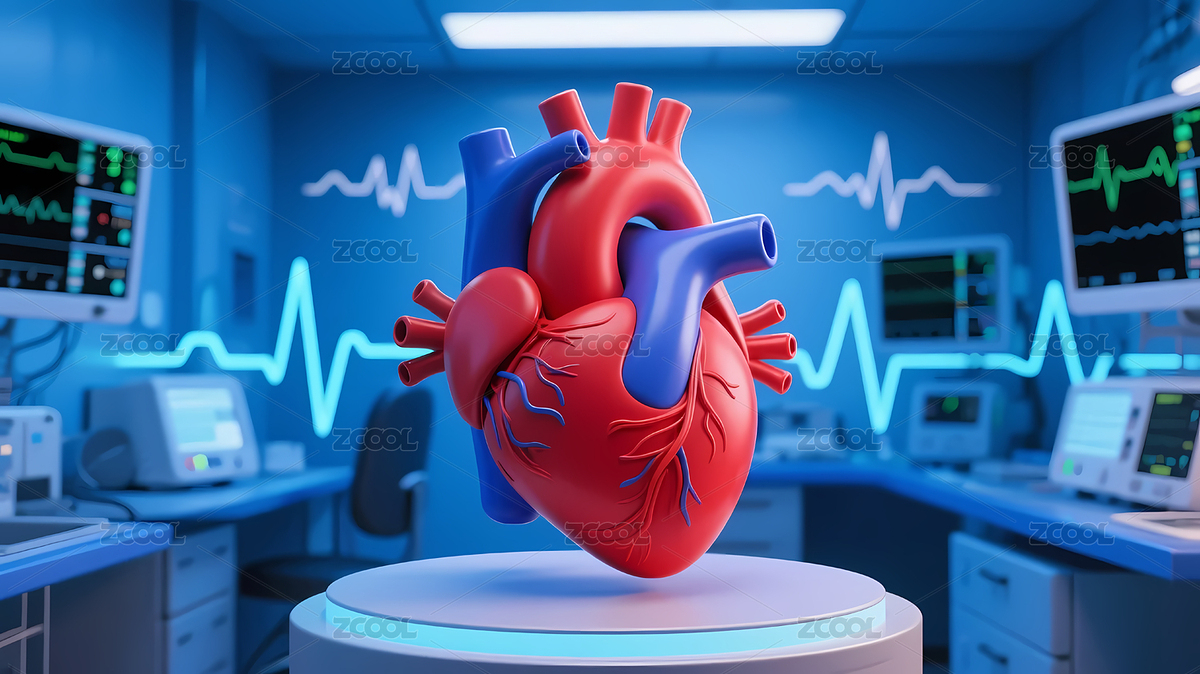 蓝色,红色,科技,心脏,3D,医疗,实验室,心电图,屏幕,设备
