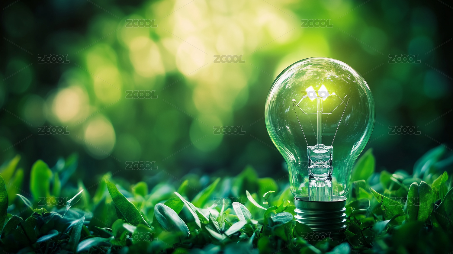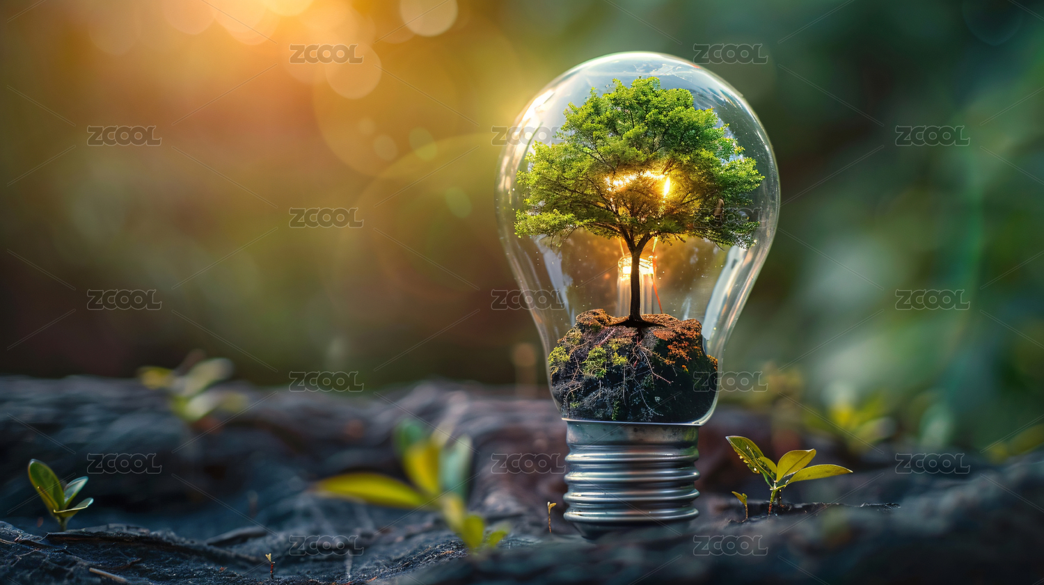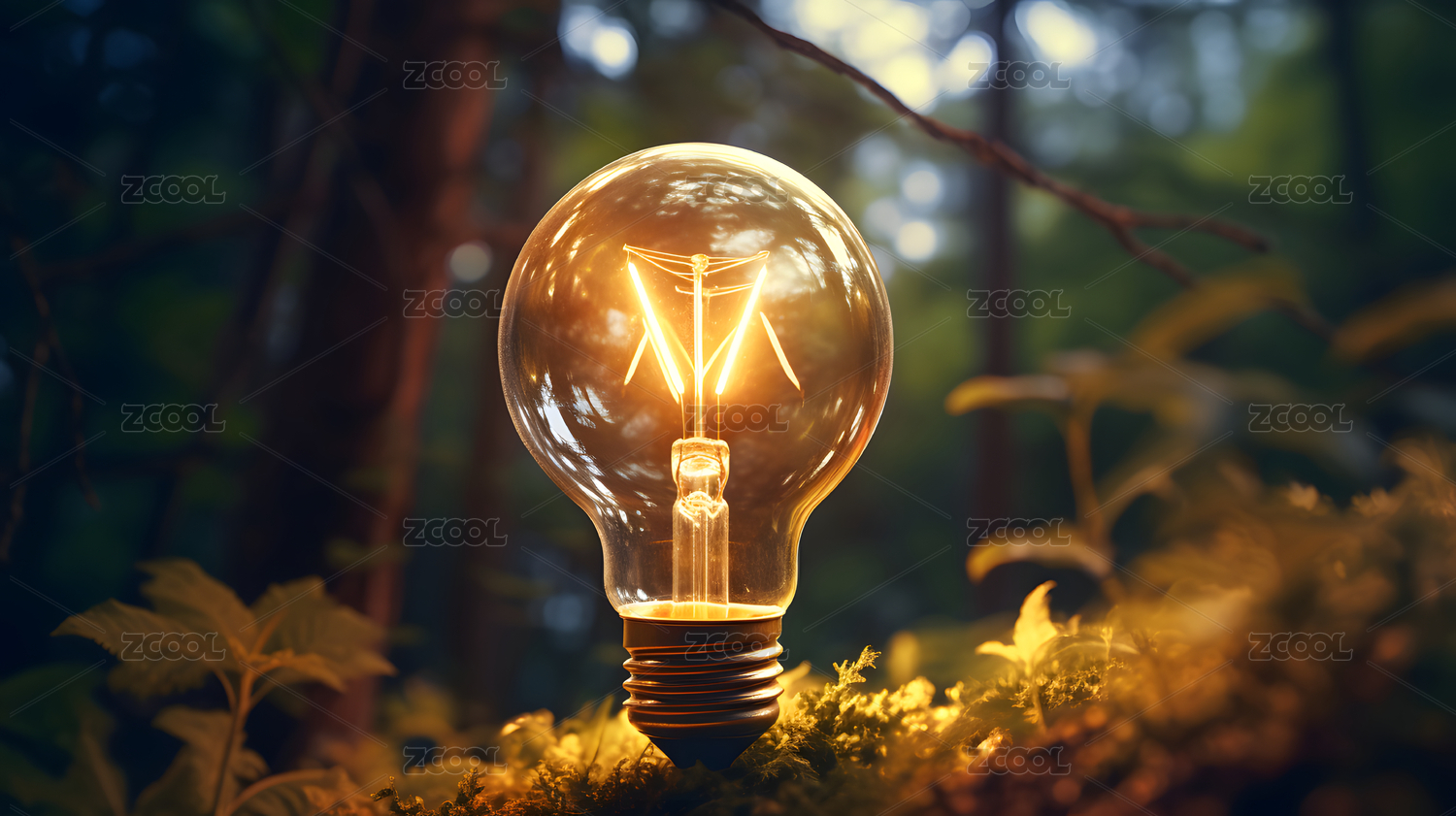 灯泡与绿色森林
