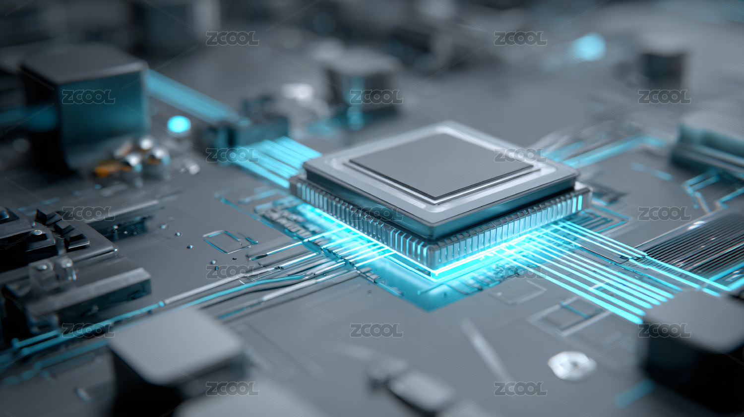 芯片,电路板,科技,发光,元件,电子,微处理器,蓝色,背景,特写