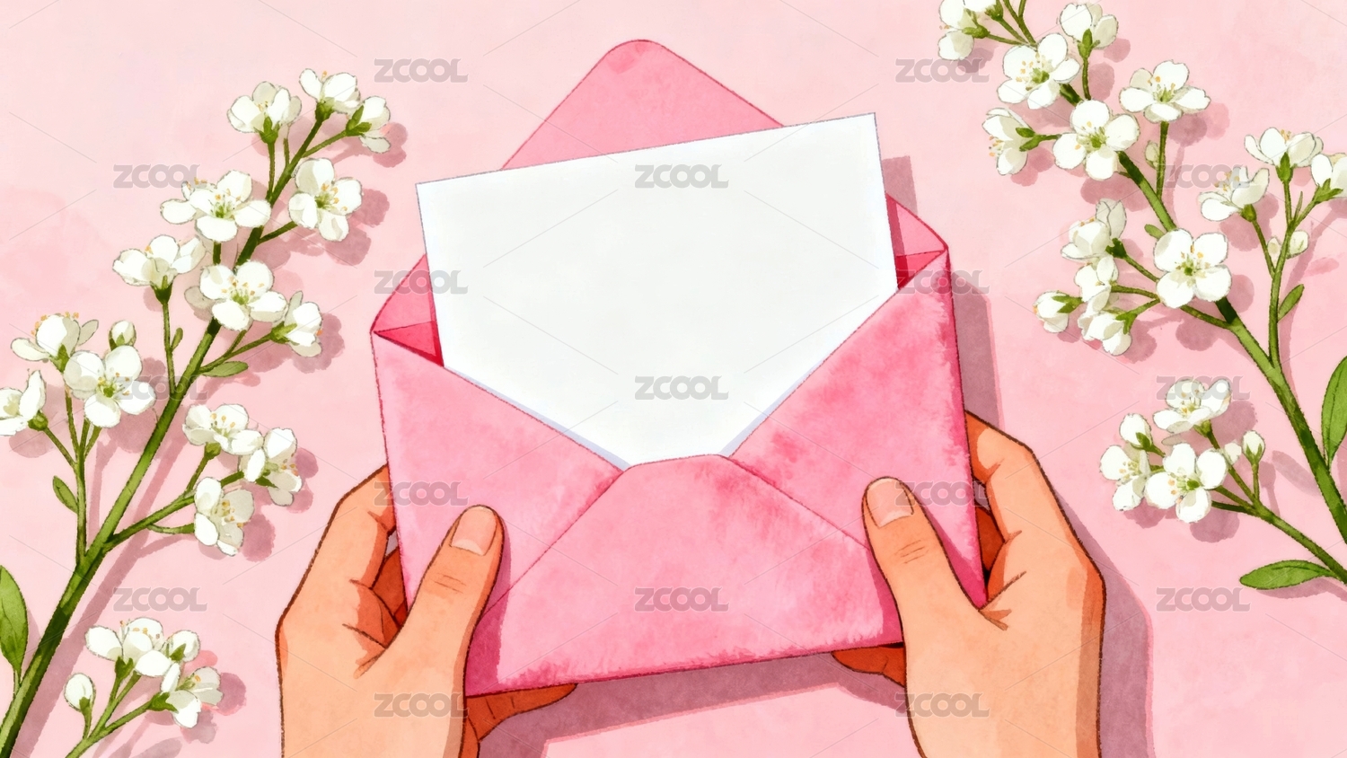 信封,手,手捧,信,插画,花,背景,简约,设计,卡片
