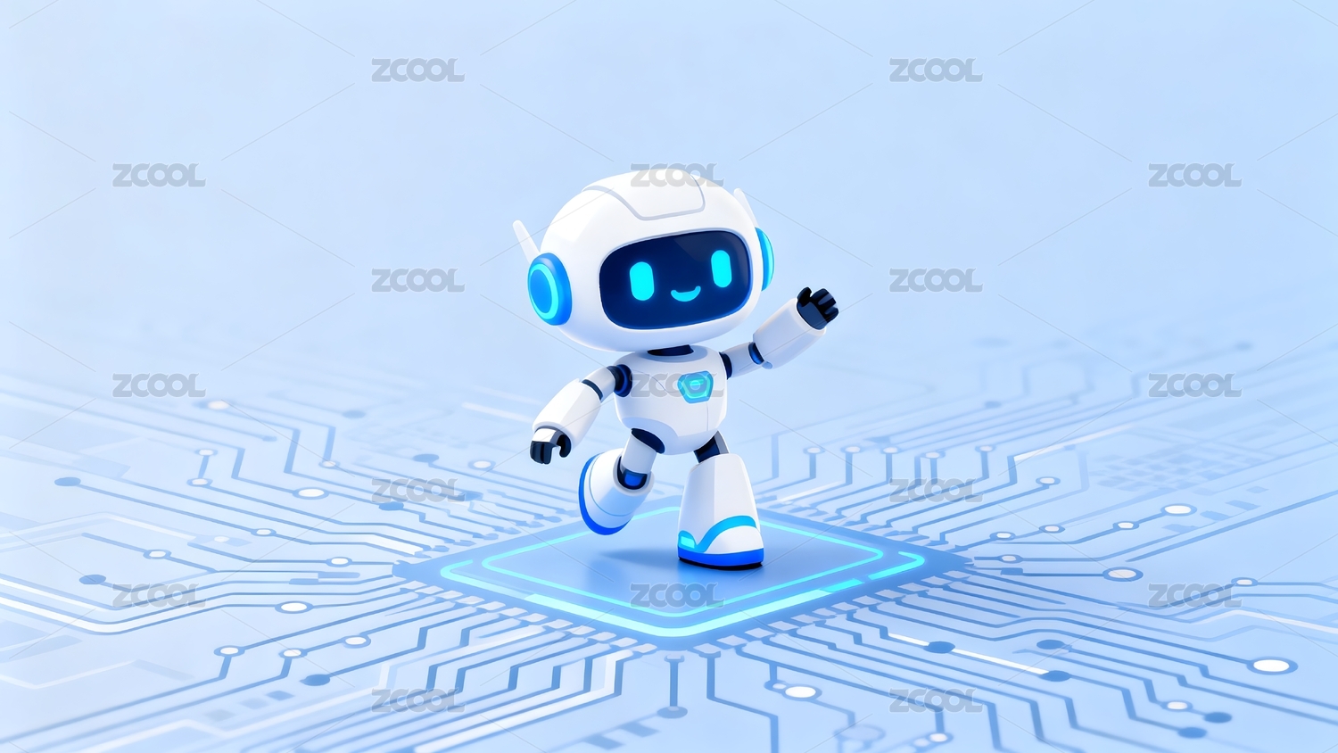 白色机器人站在电路板上挥手