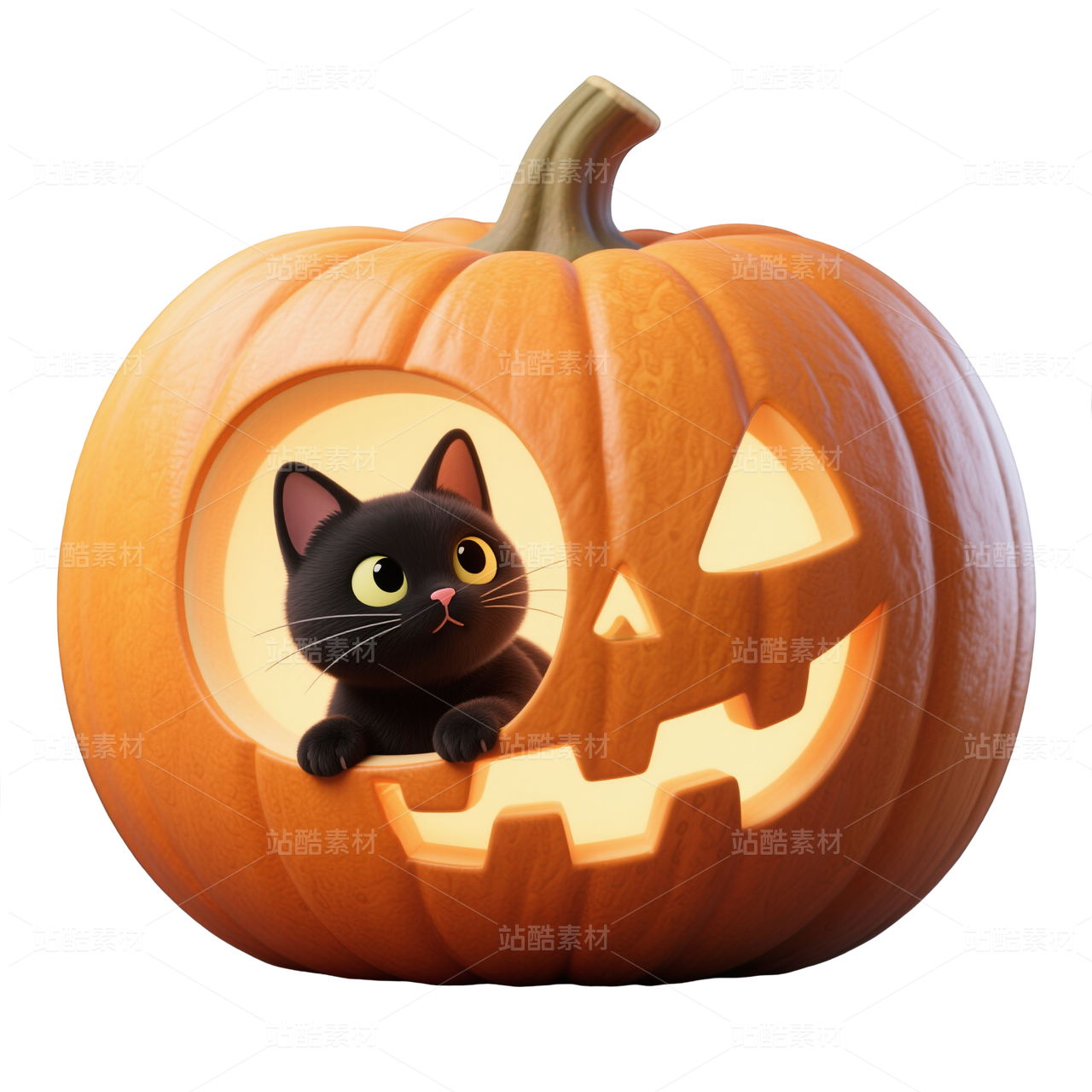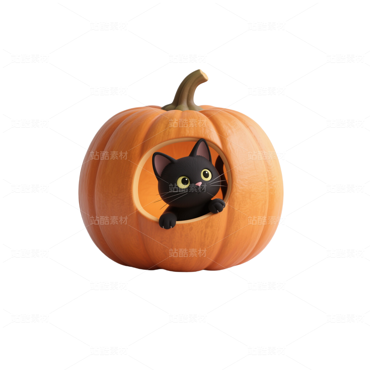 3D风格躲在南瓜里的猫-万圣节免抠素材 (3)