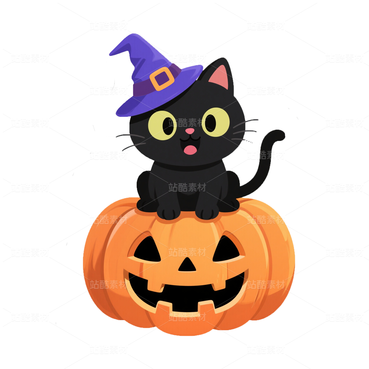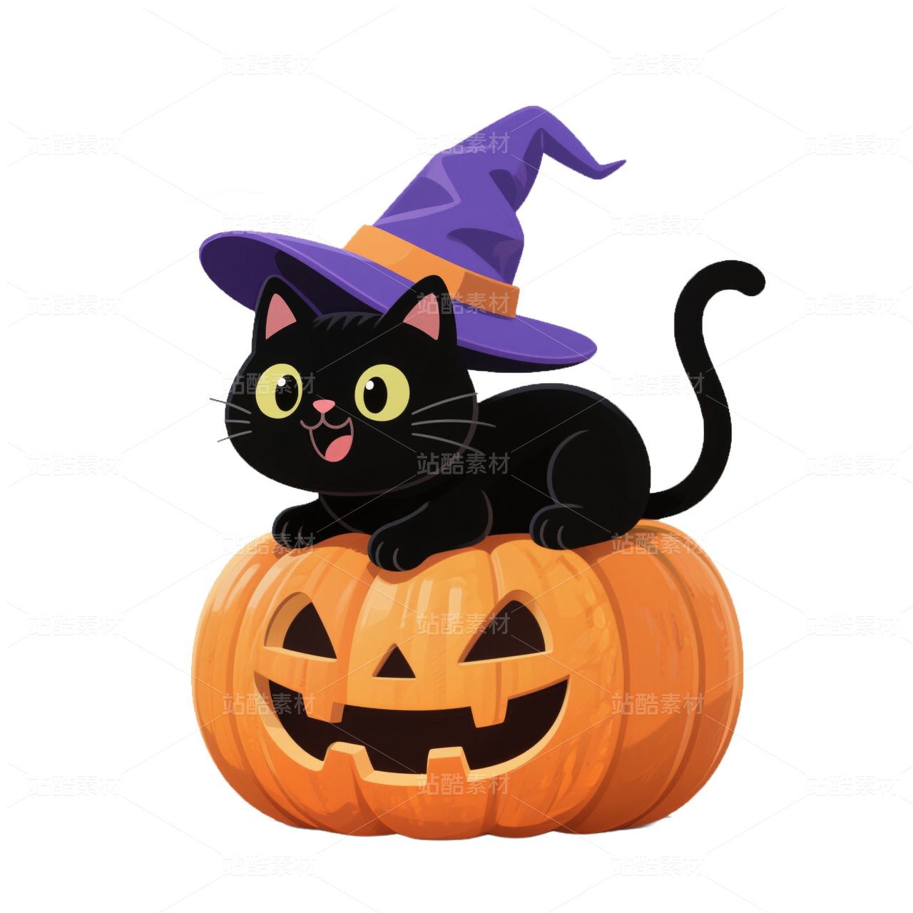 卡通风格坐在南瓜上的猫-万圣节免抠素材 (3