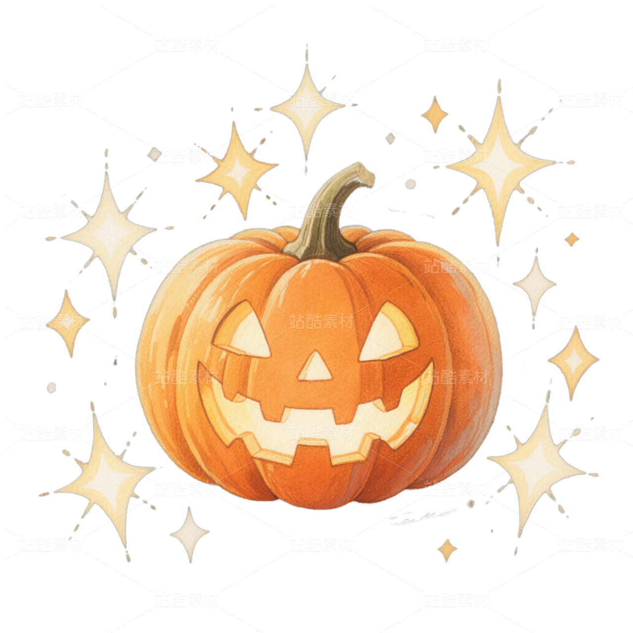 水彩南瓜头-万圣节免抠图