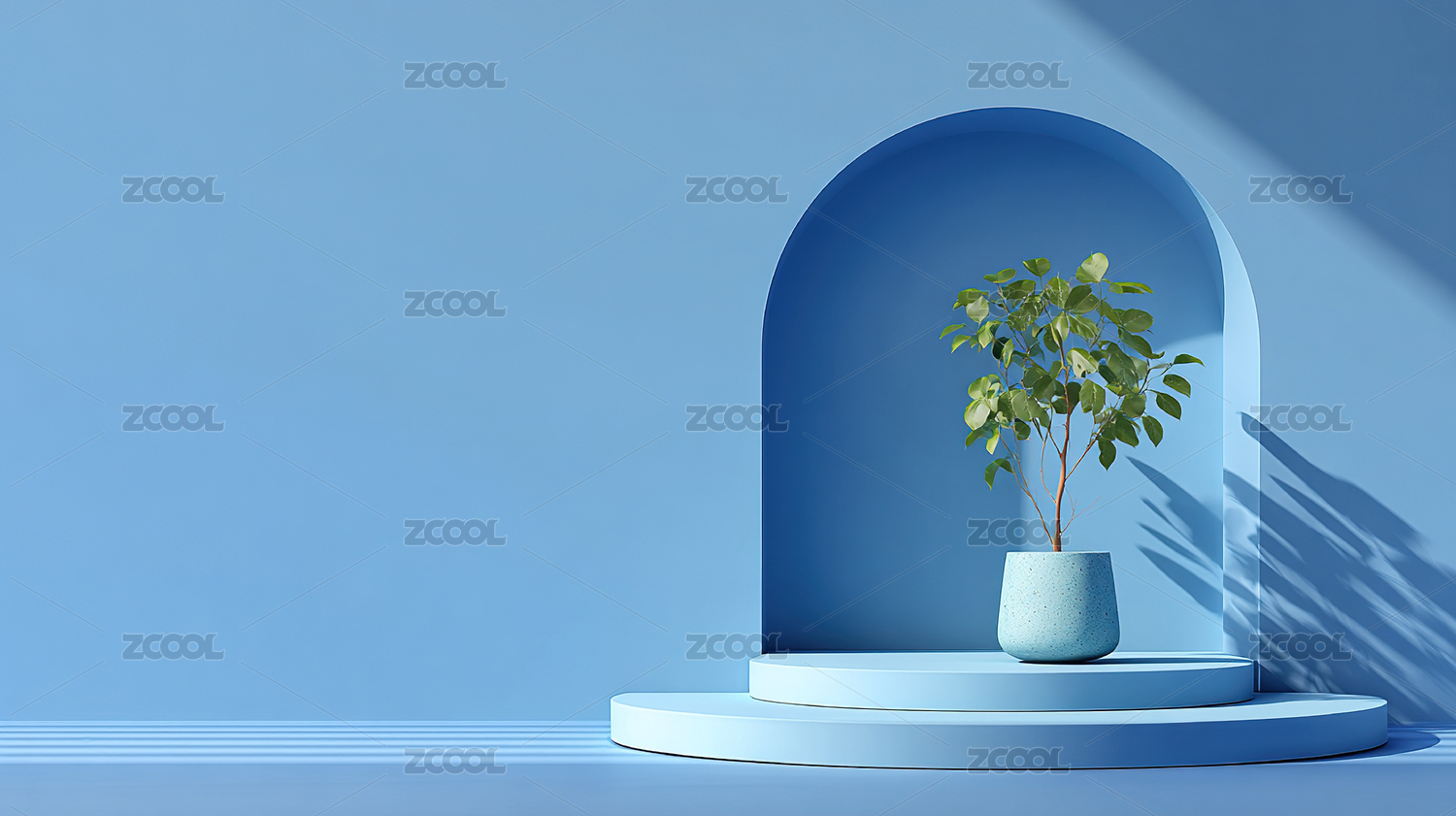 北欧,极简,室内,场景,淡蓝,色调,叶片,蓝瓶,花瓶,曲形