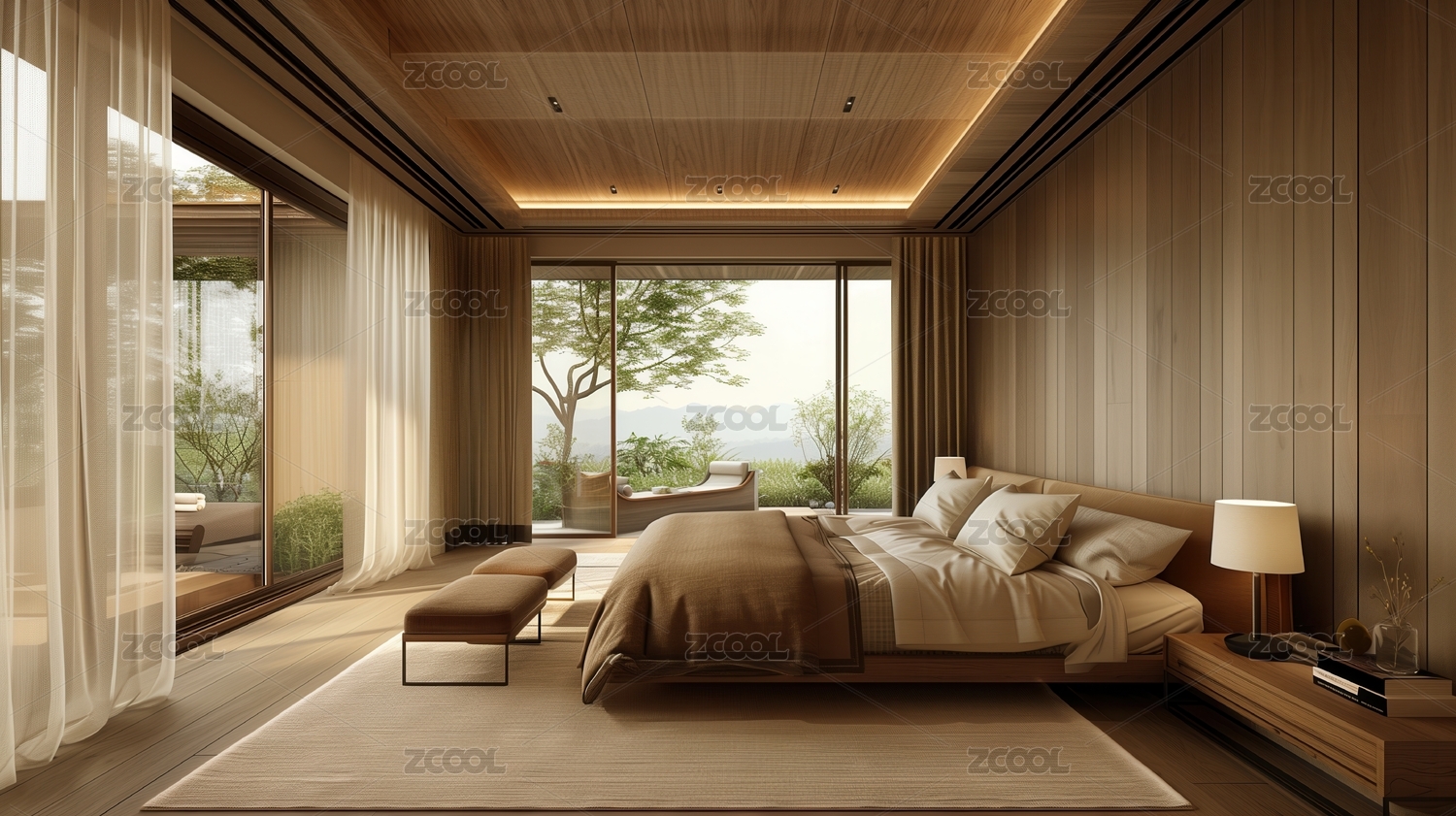 卧室,日式,线条,纹理,木材,原木,装饰,不对称,光影,自然光