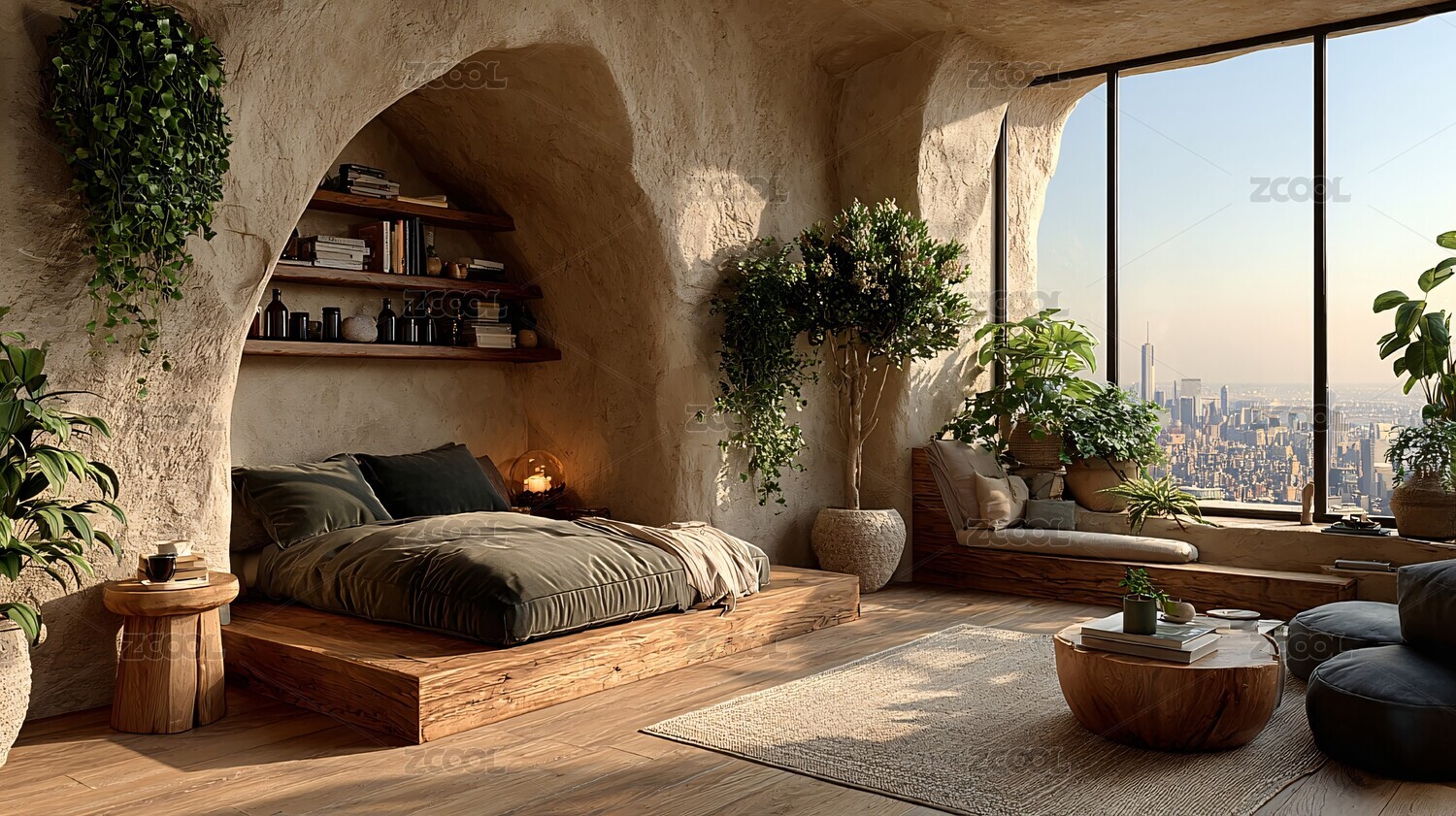 卧室,墙面,有机,纹理,曲线,搁架,木质,陶器,花瓶,照明