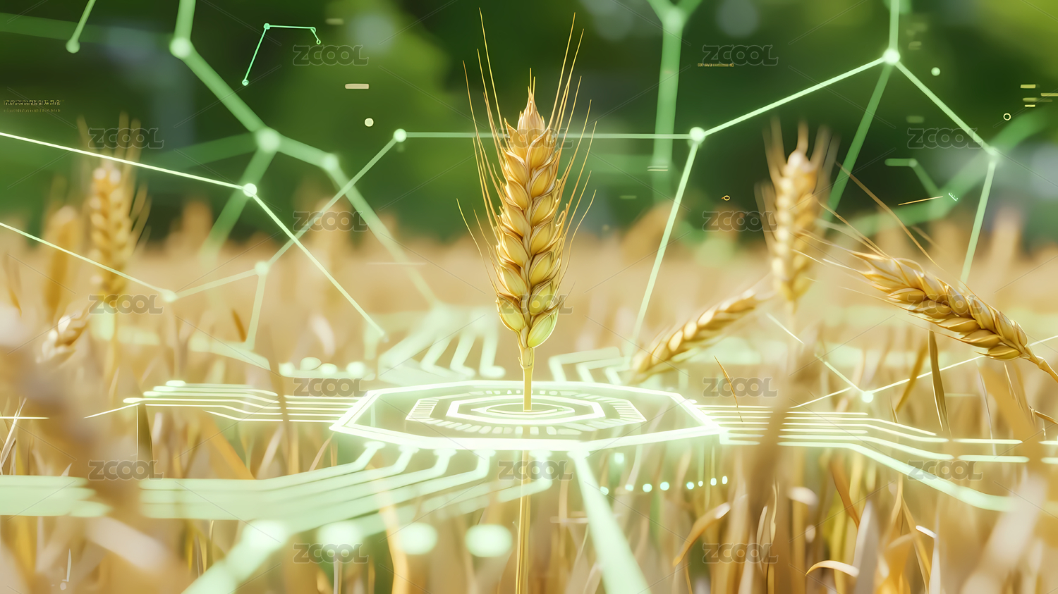 麦穗,科技,互联,蓝色,农业,数字化,未来,网络,数据,田野