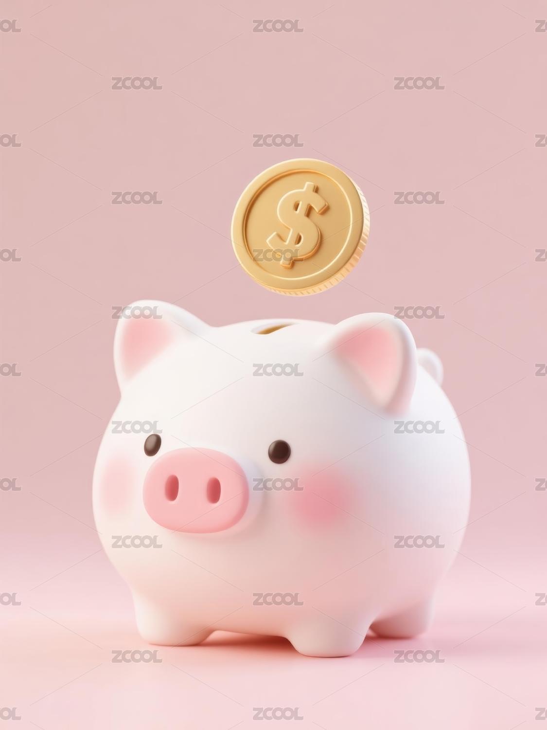 背景,白色,粉色,渐变,温馨,柔和,存钱罐,猪形,金币,顶部