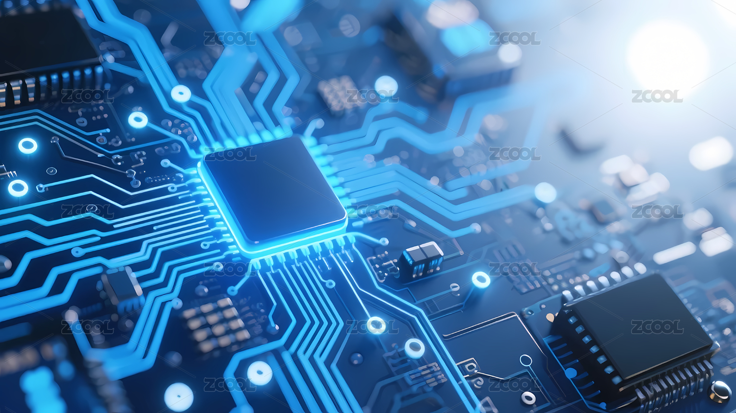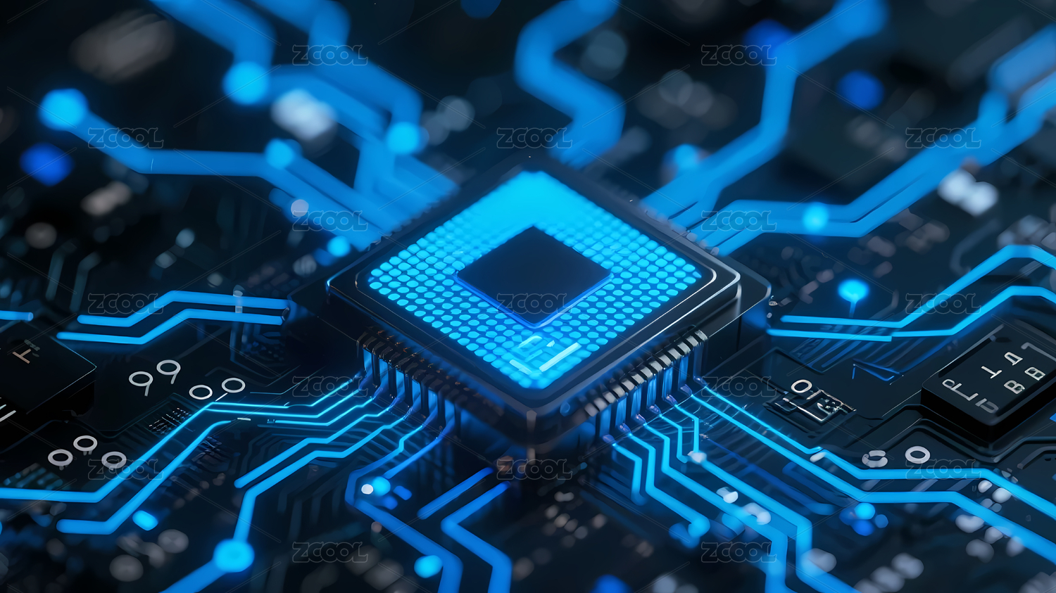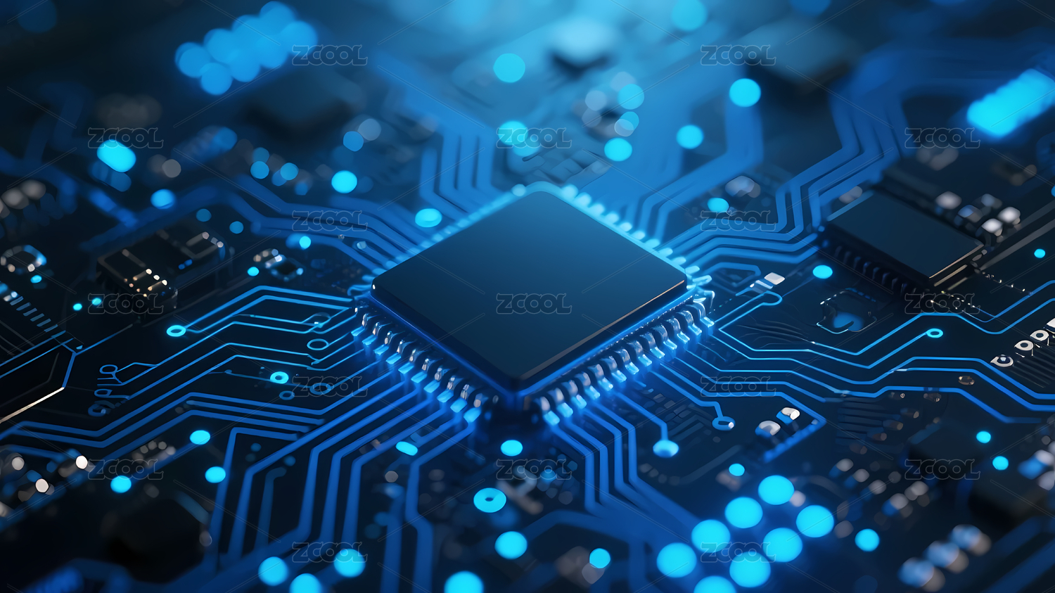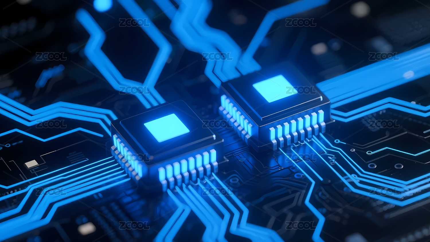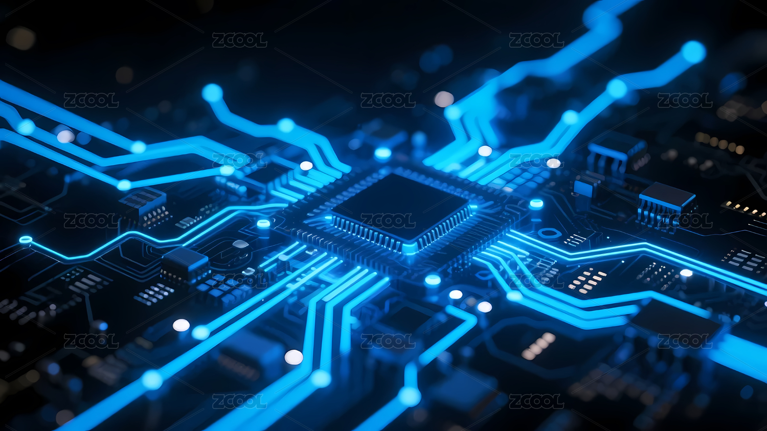 蓝色,芯片,电路板,电路,高科技,发光,导线,科技,未来