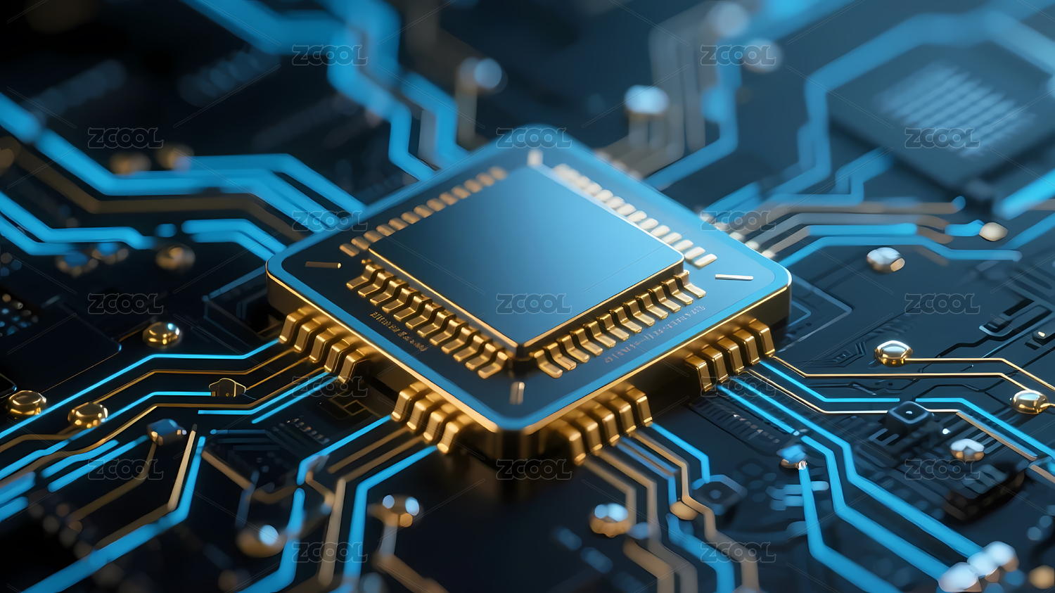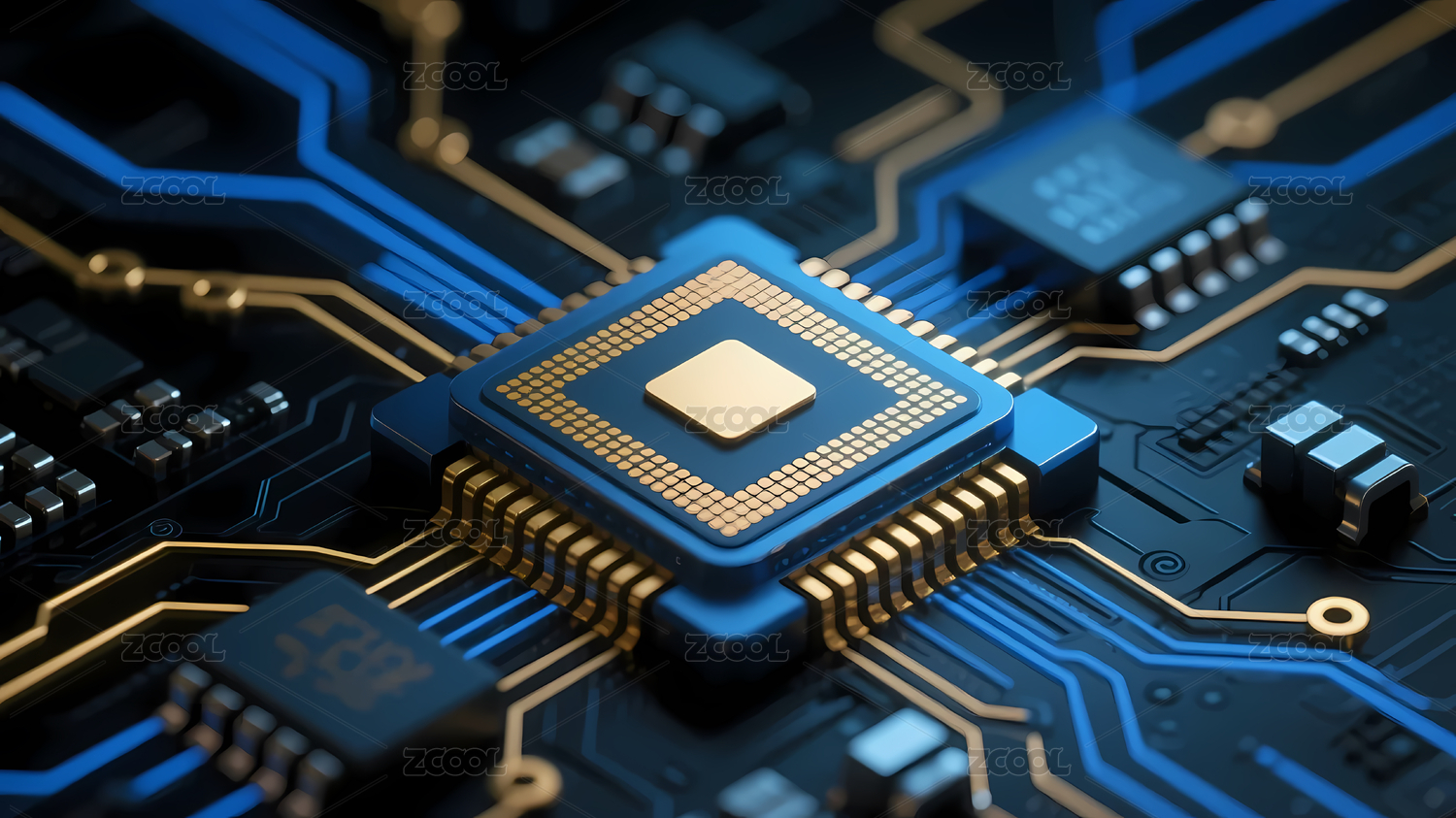 电路板, 蓝色, 高科技,金色, 微处理器, 电子元件, 深色, 光泽, 元素, 细节