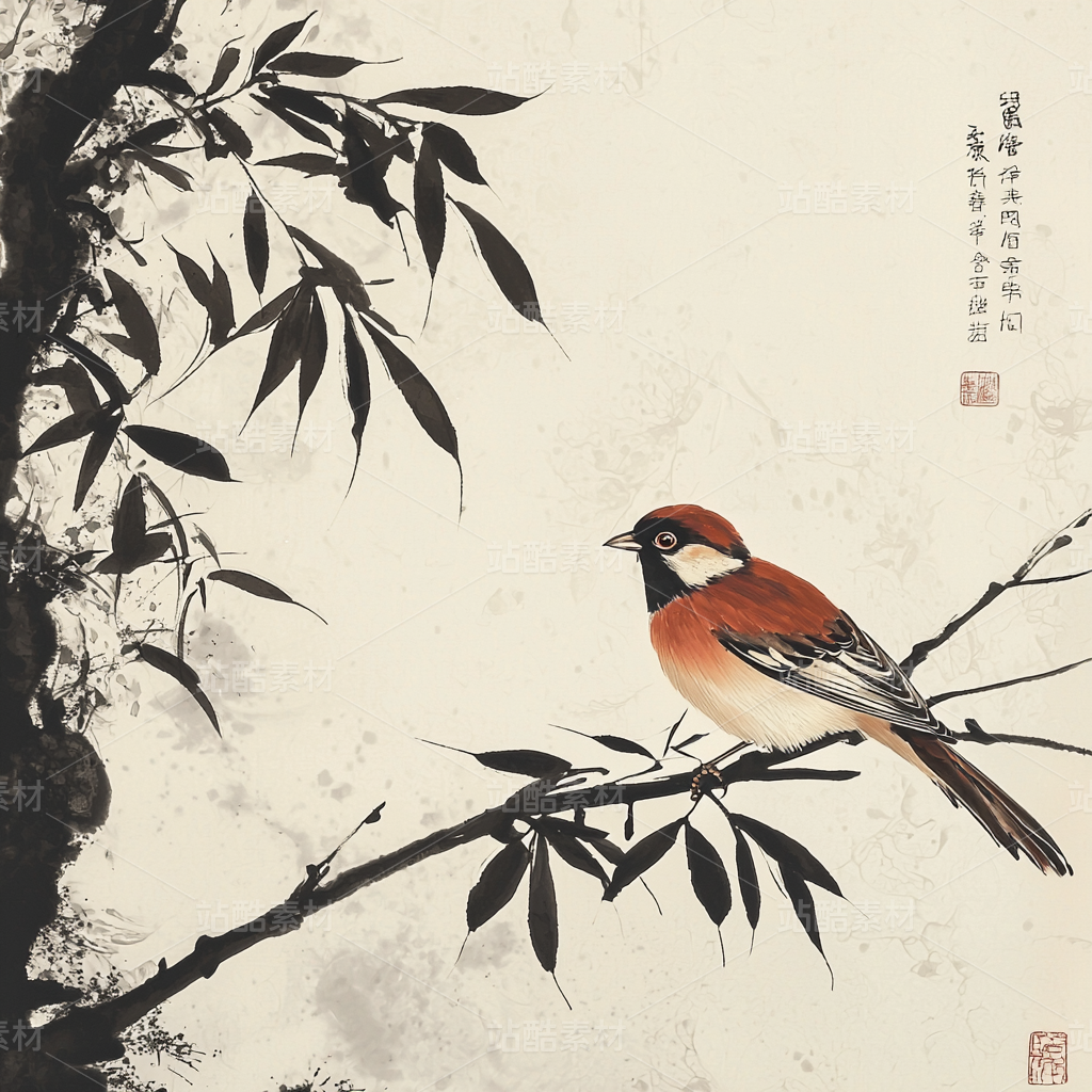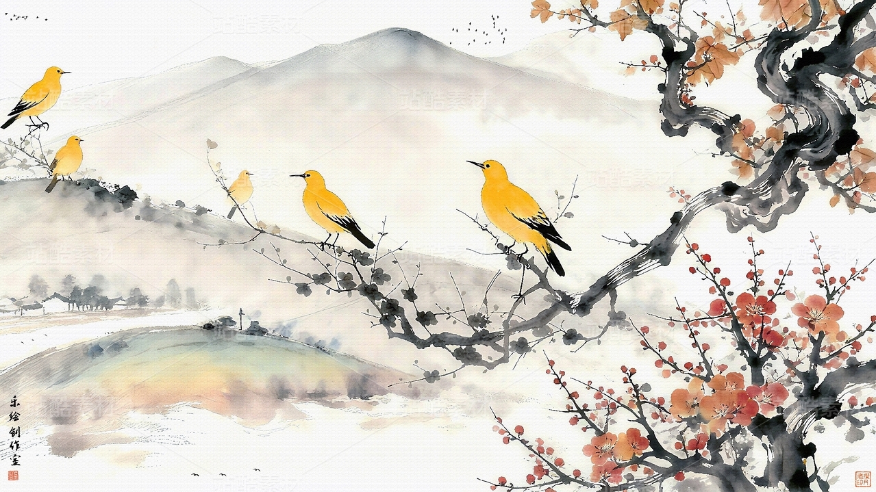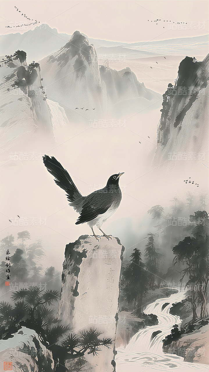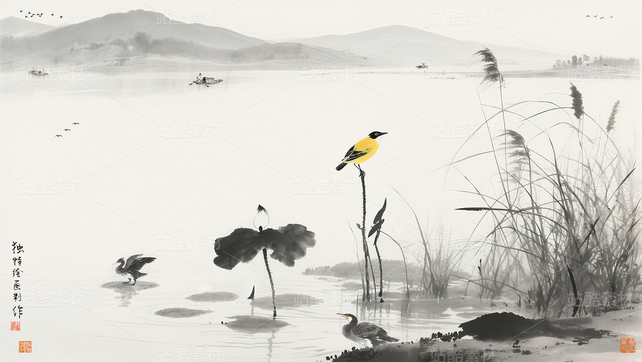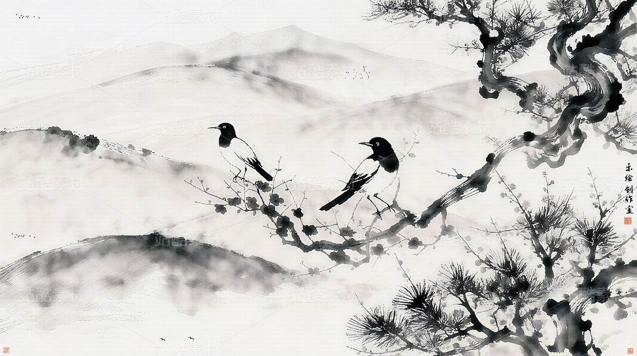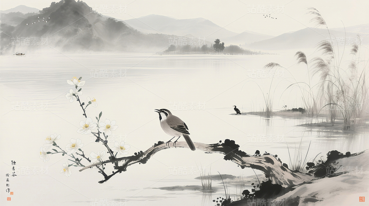 水墨花鸟水墨山水花鸟画新中式国画山水花鸟写意花鸟