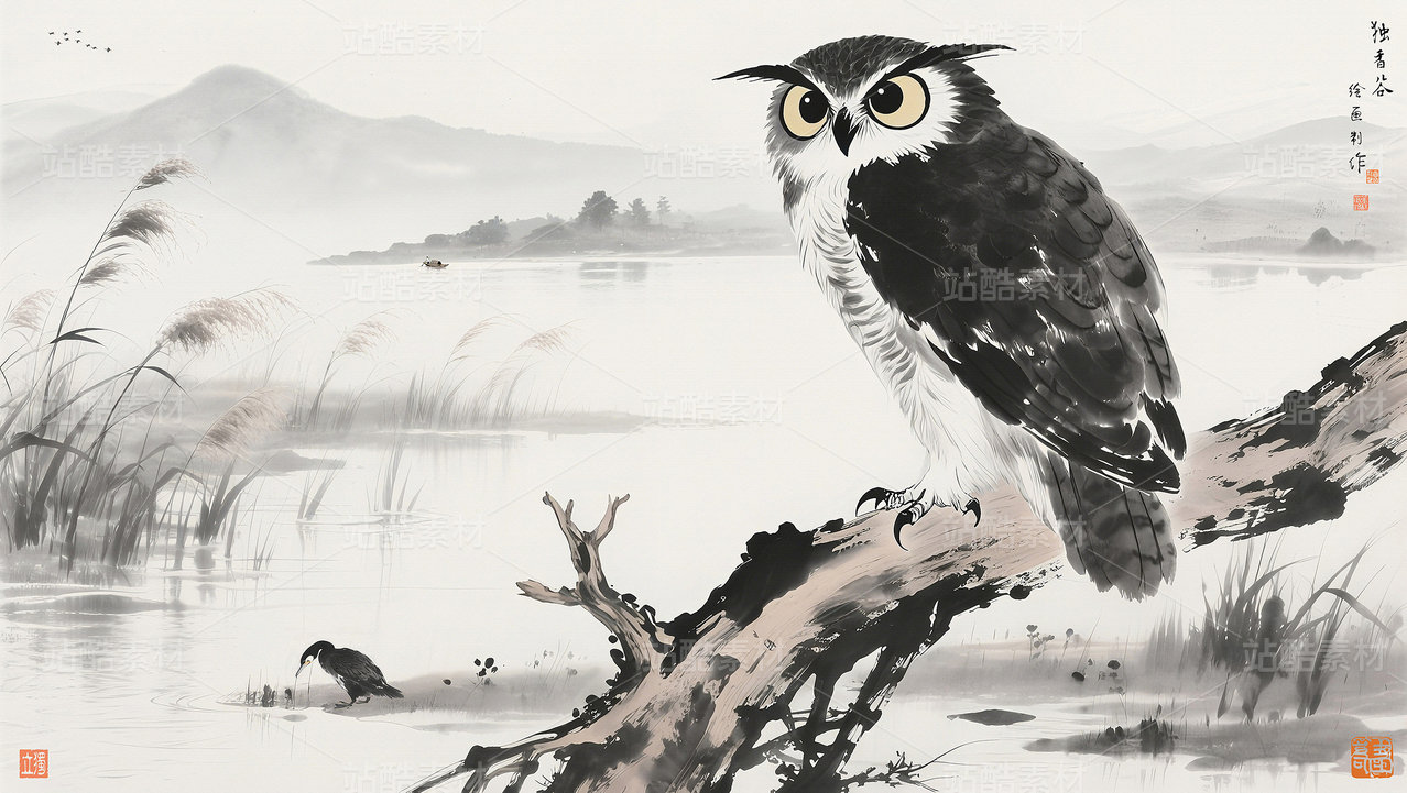 中式写意花鸟禅境水墨花鸟画水墨山水花鸟画国画山水
