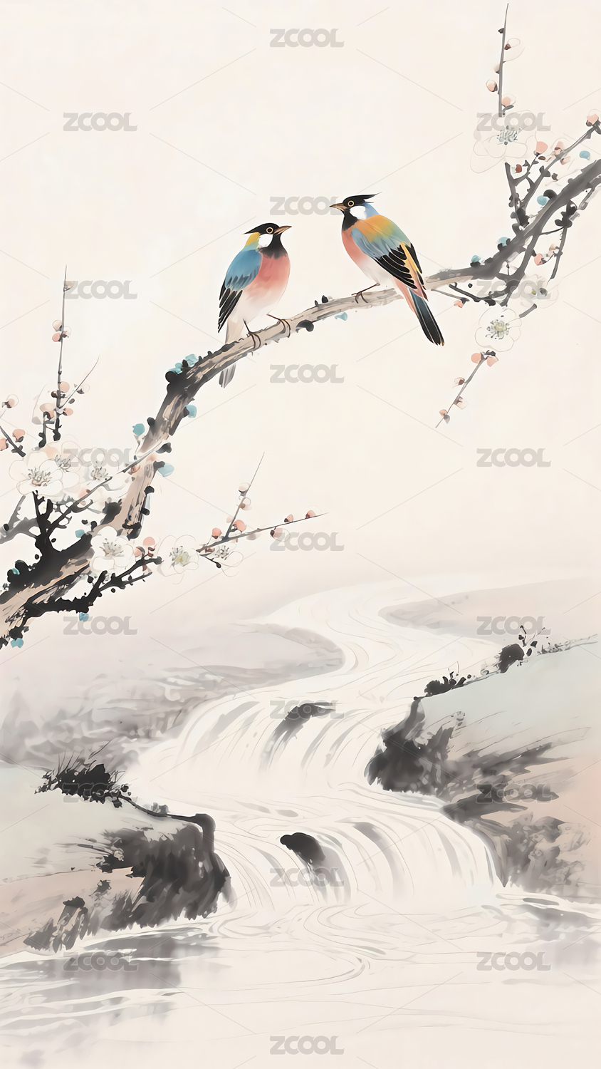 水墨花鸟水墨山水花鸟画新中式国画山水花鸟写意花鸟