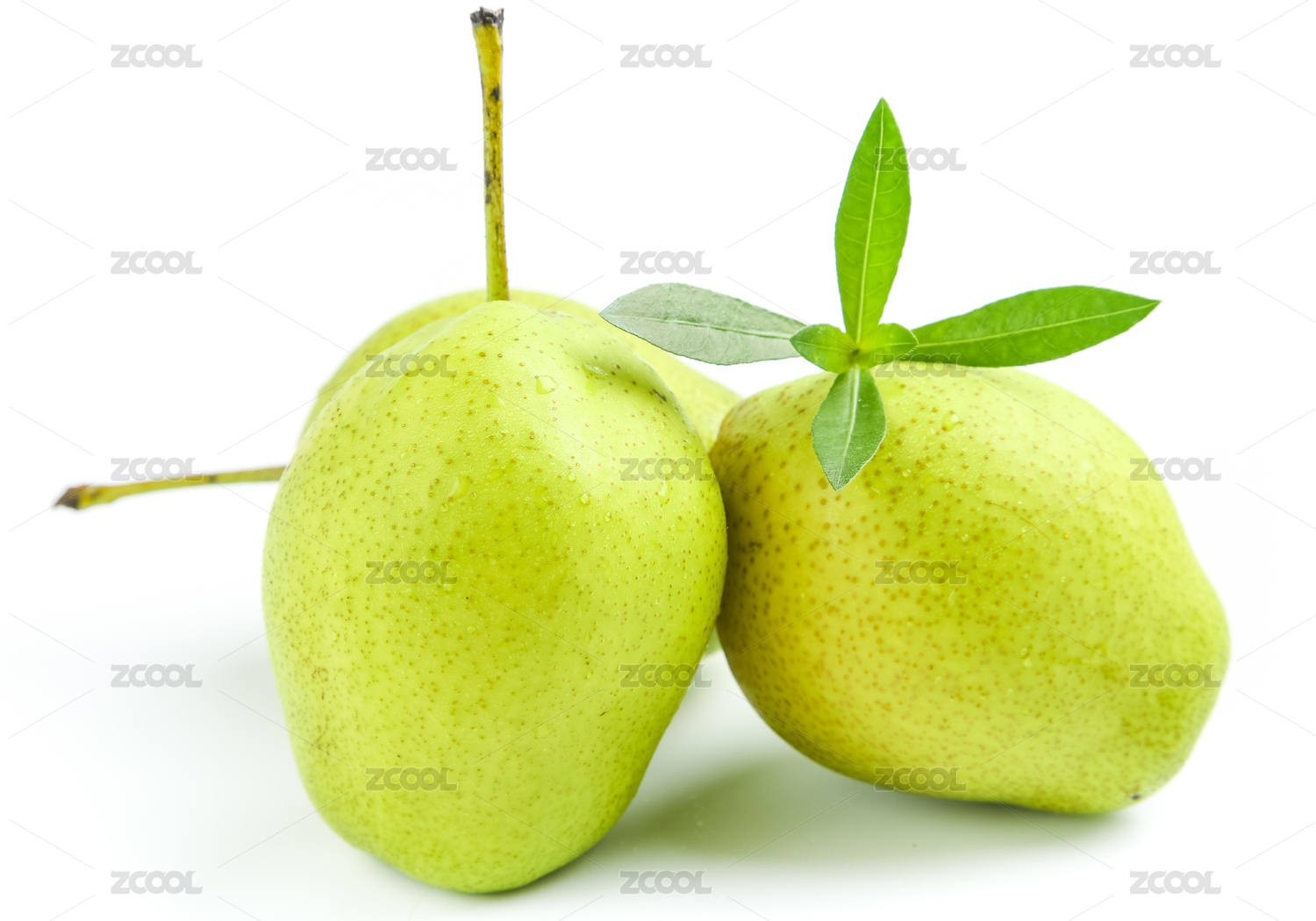 库尔勒香梨带叶子白底
