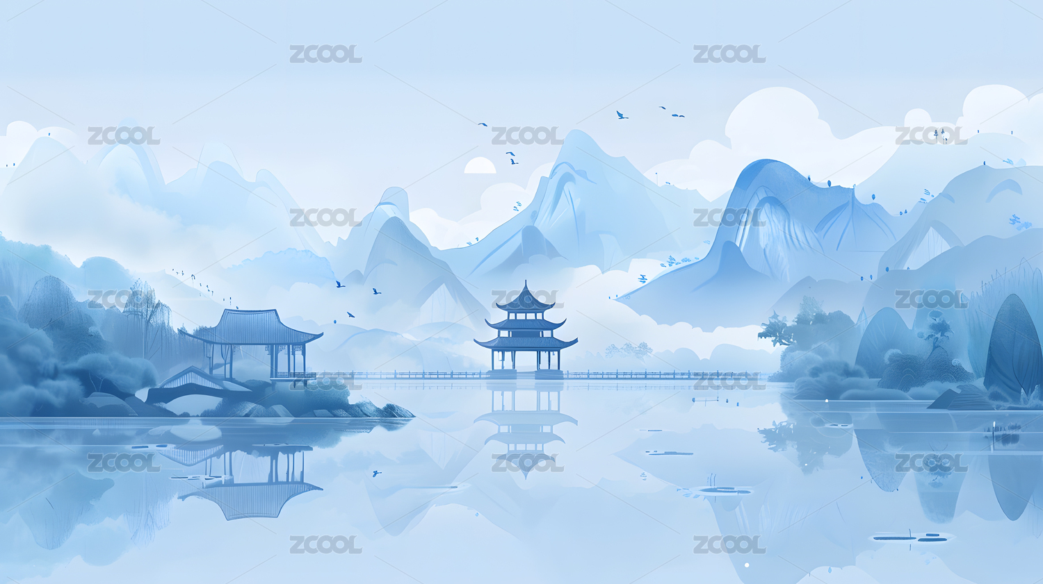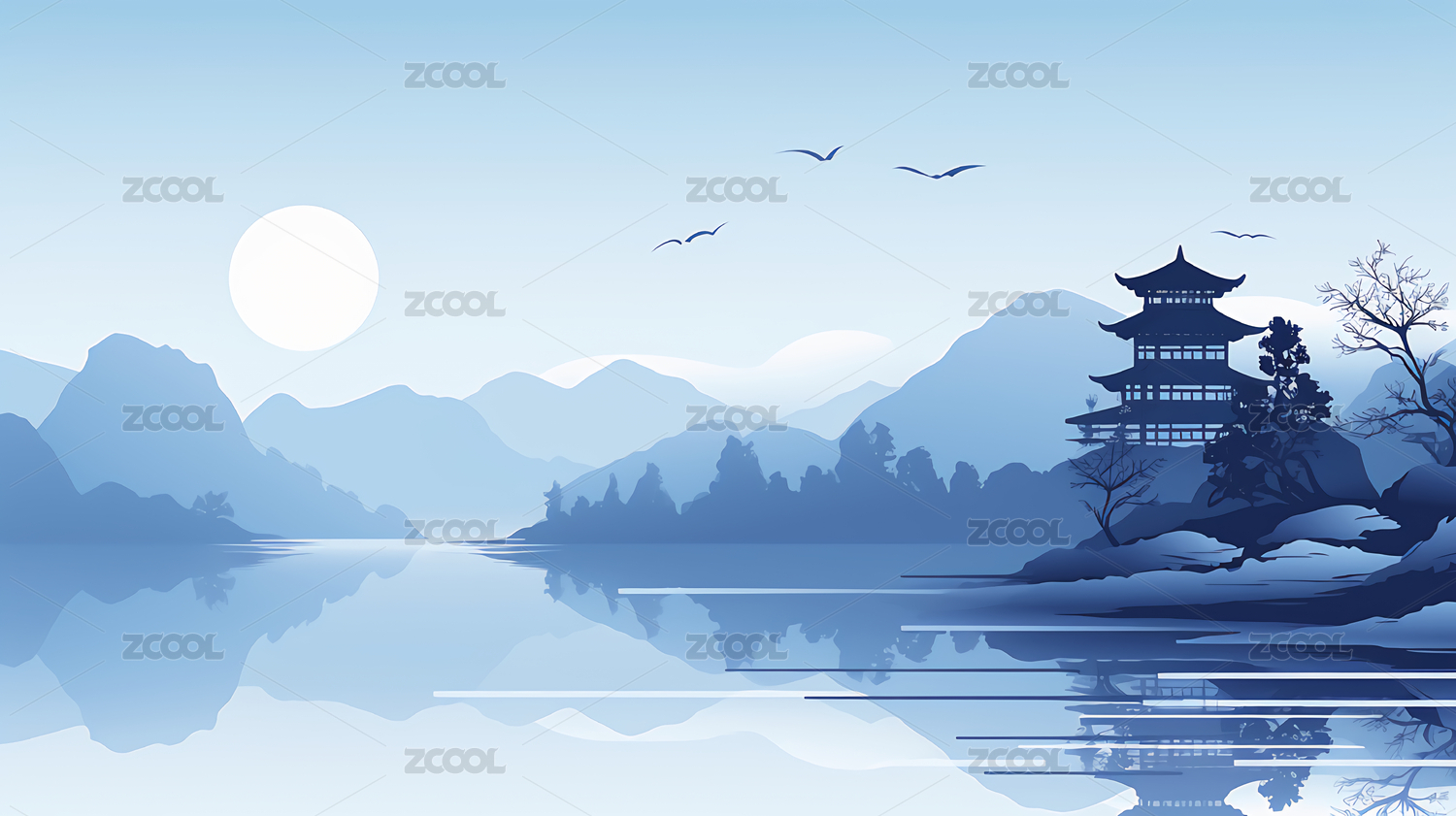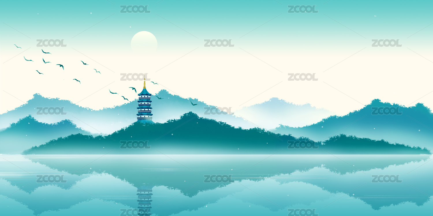 山水画,艺术,树木,倒影,设计,宁静,风景,插图,绘画,中国风
