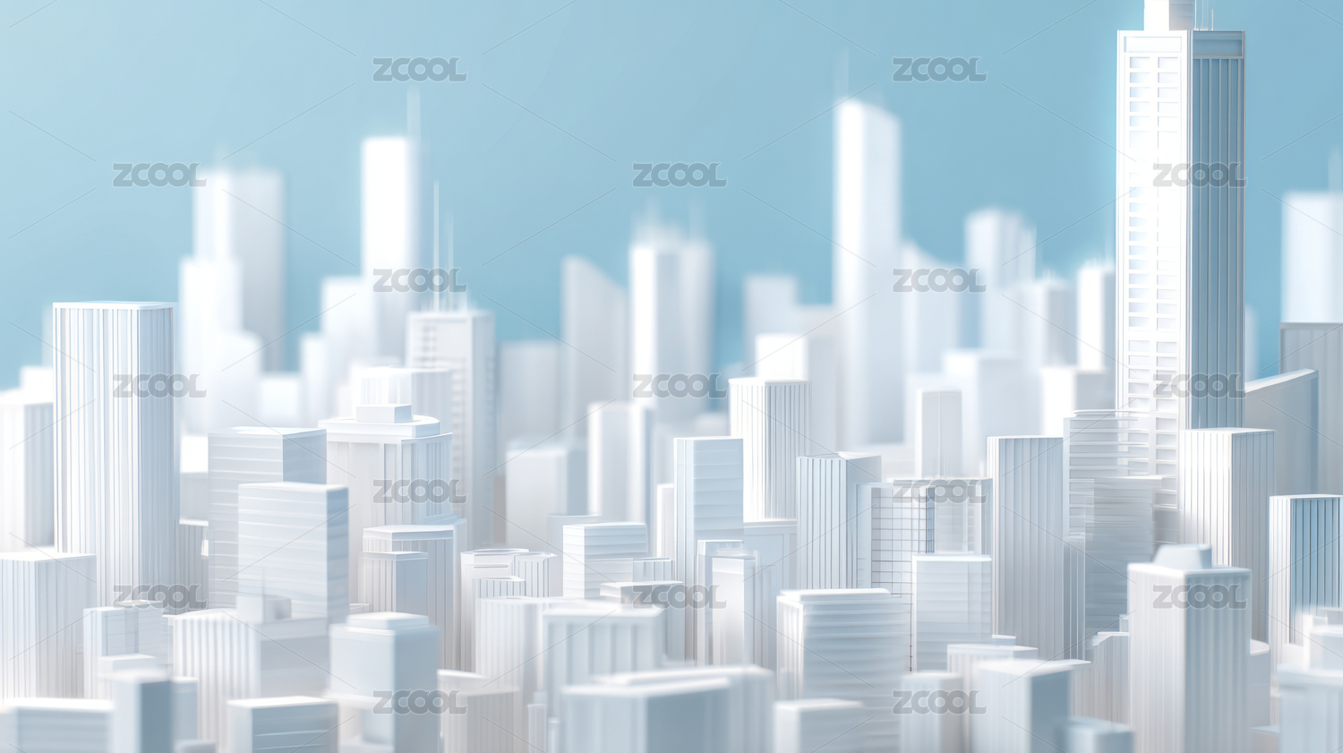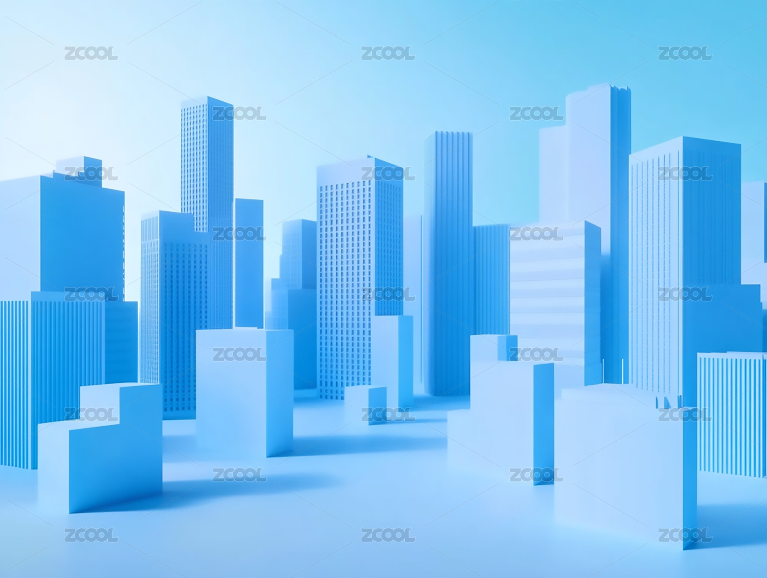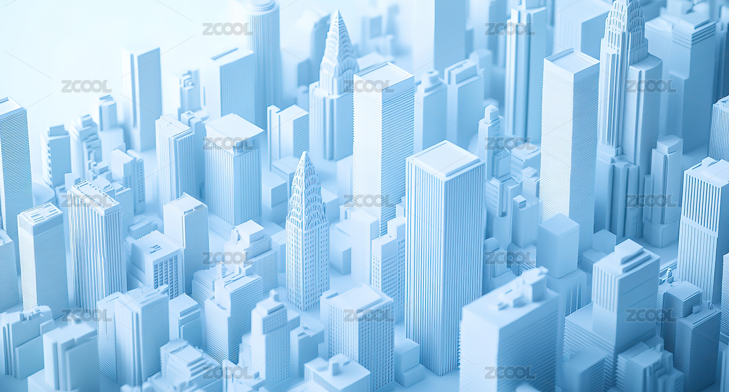 蓝色城市建筑高楼大厦模型