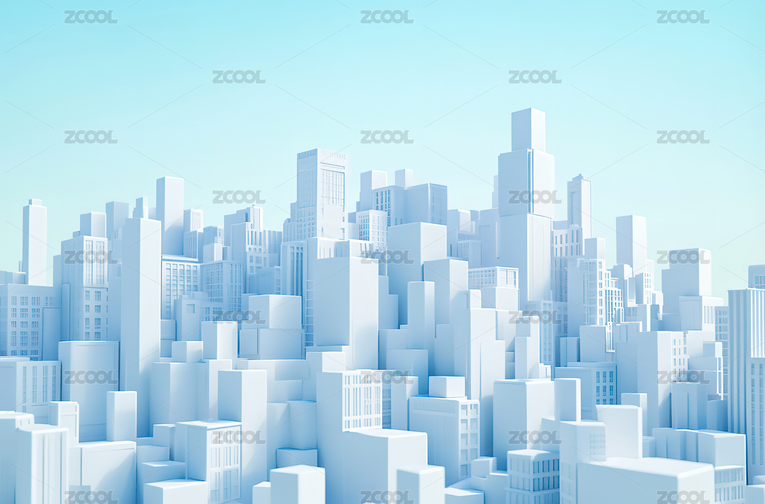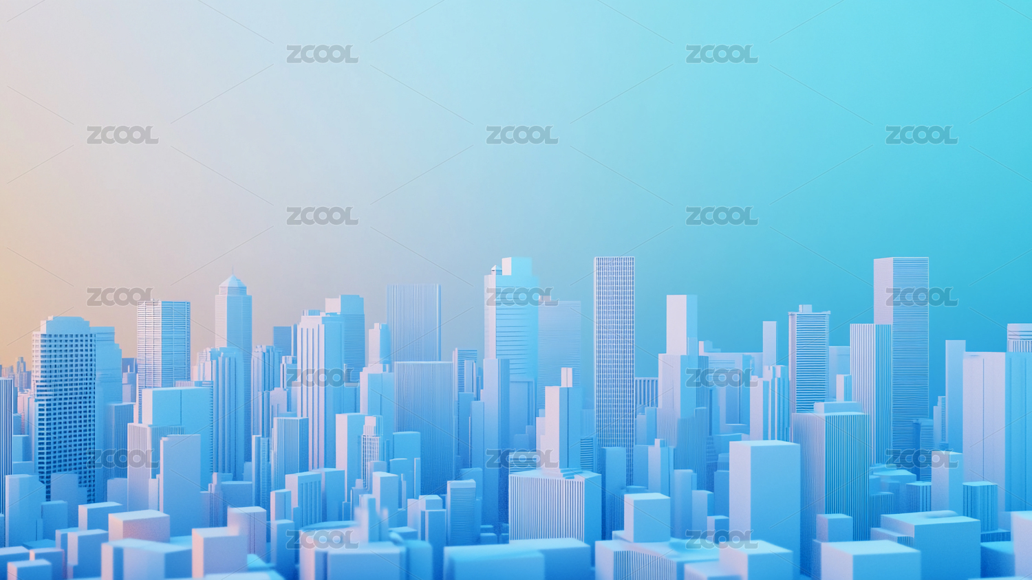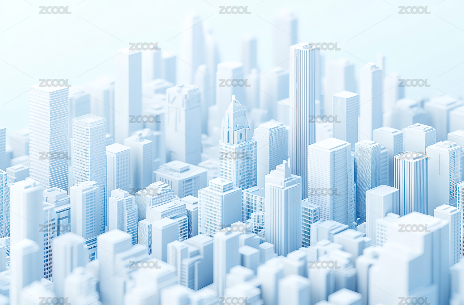 蓝色城市建筑高楼大厦模型