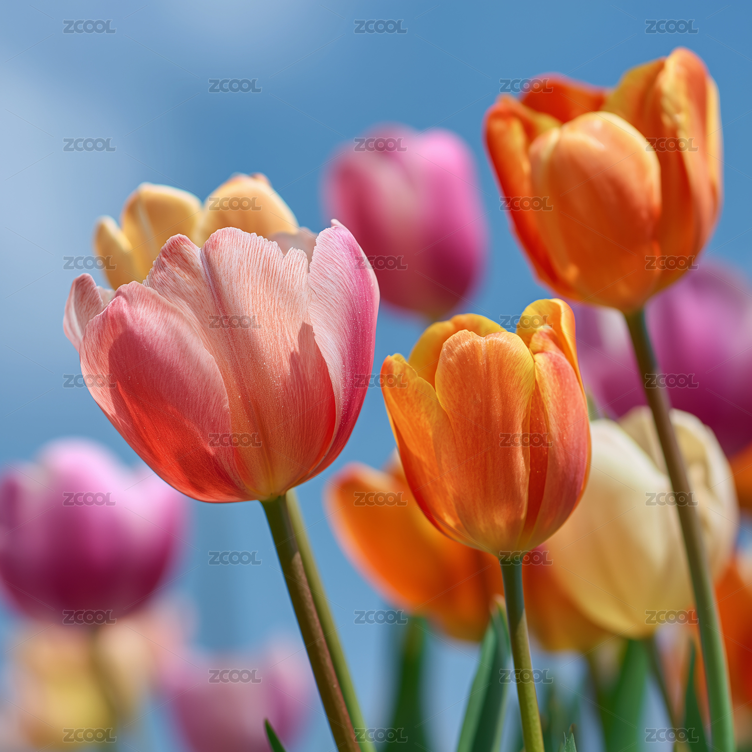 微距,花卉,摄影,郁金香,粉色,橙色,伸展,天空,背景,花园