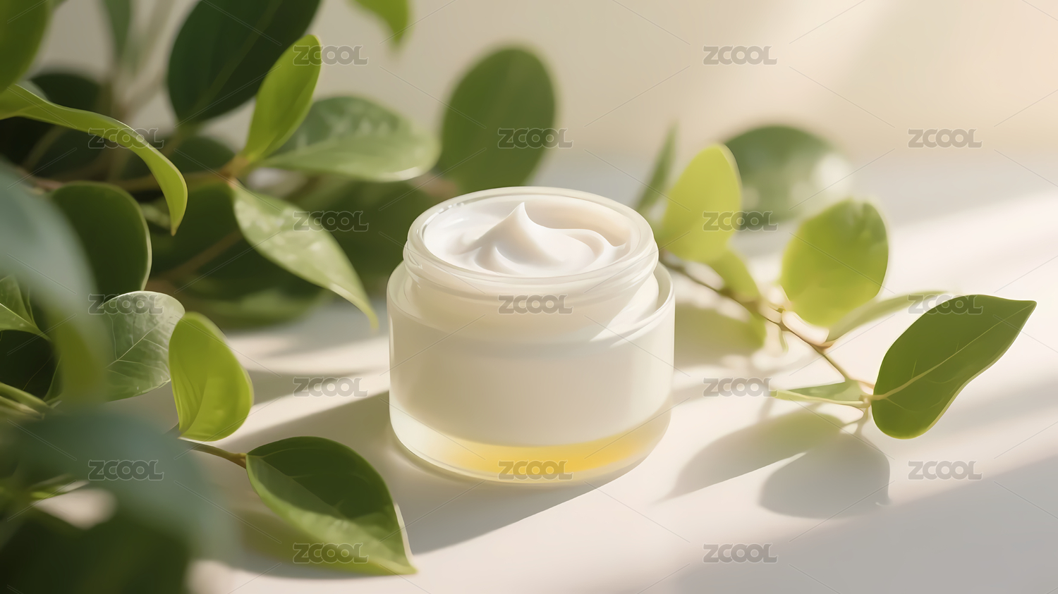 绿色,黑色,清新,叶子,柔和,护肤品,乳霜,米色,容器,浅色