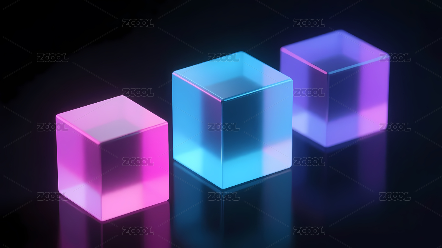 三个发光立方体深色背景