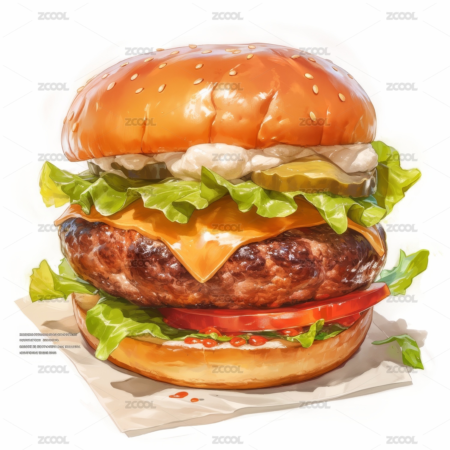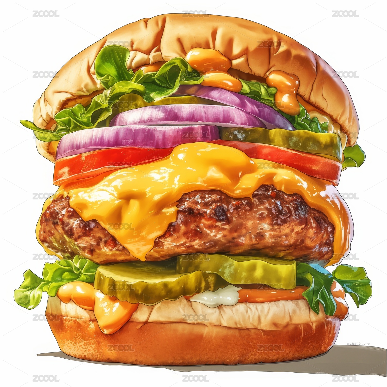 美味芝士汉堡的艺术插画