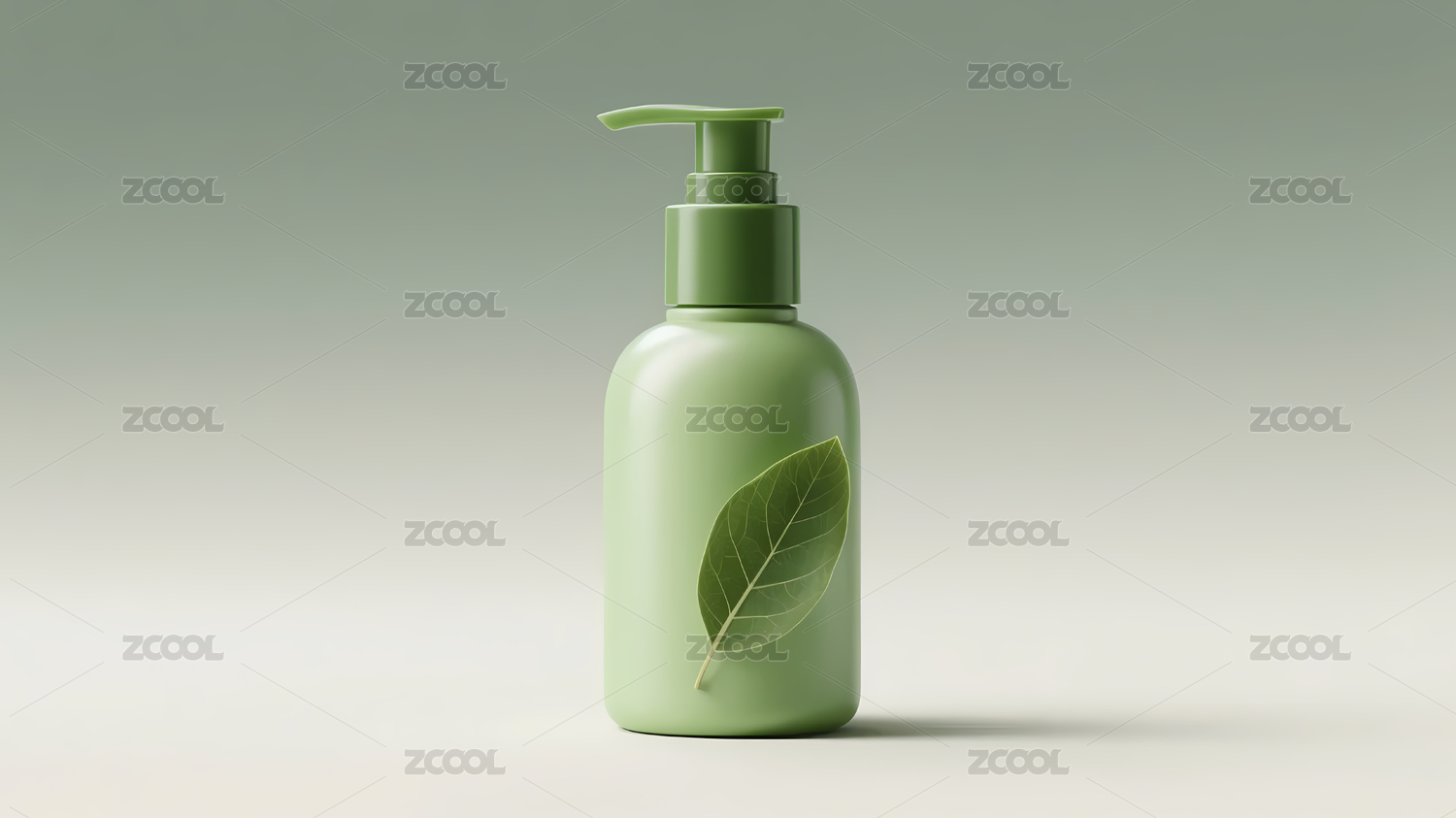 绿色,渐变,植物,清新,瓶子,叶子,柔和,产品,浅棕色,乳液