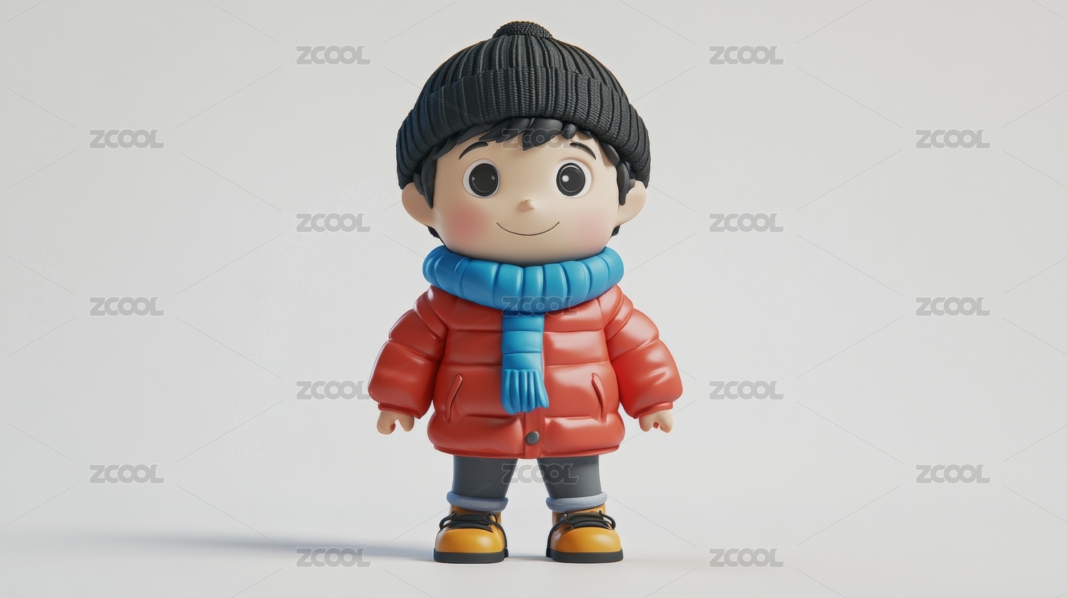 冬天穿着暖和的男孩3d插画