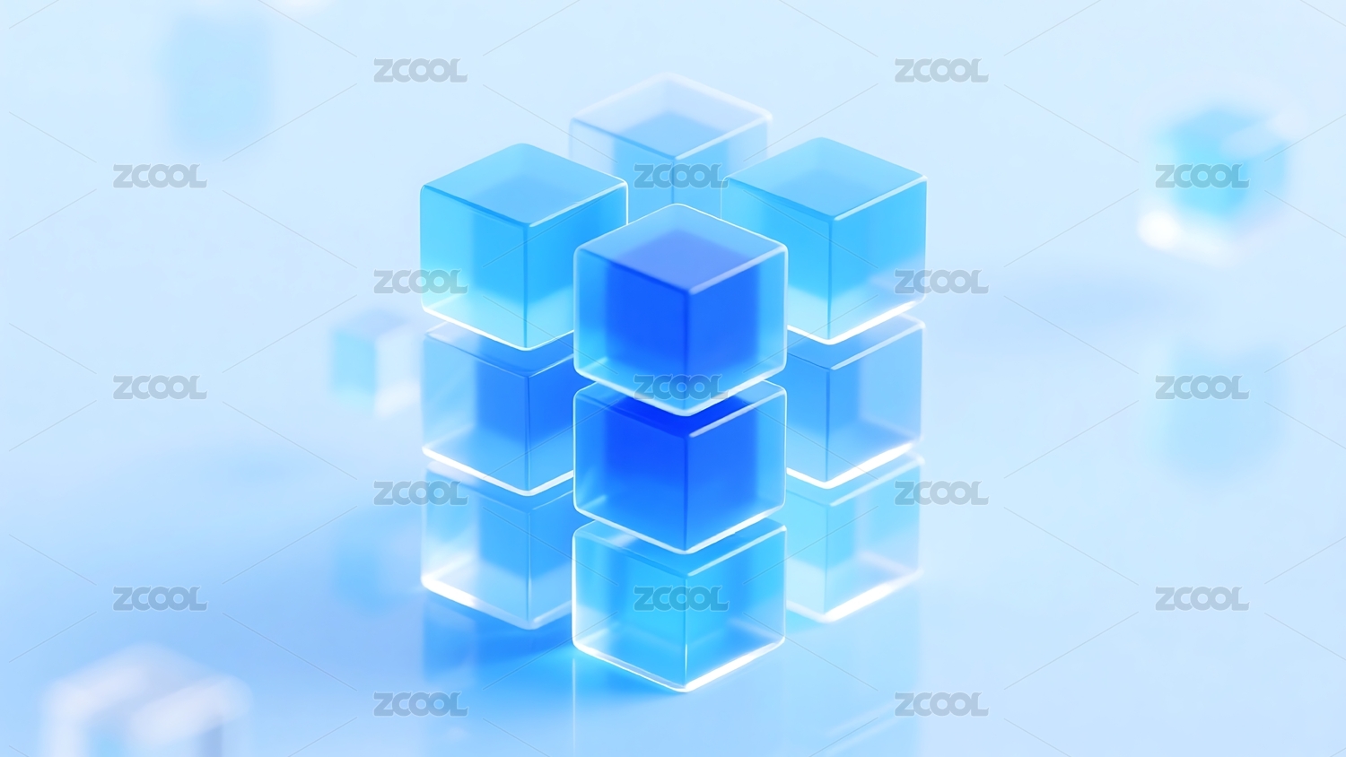 浅蓝渐变透明立方体