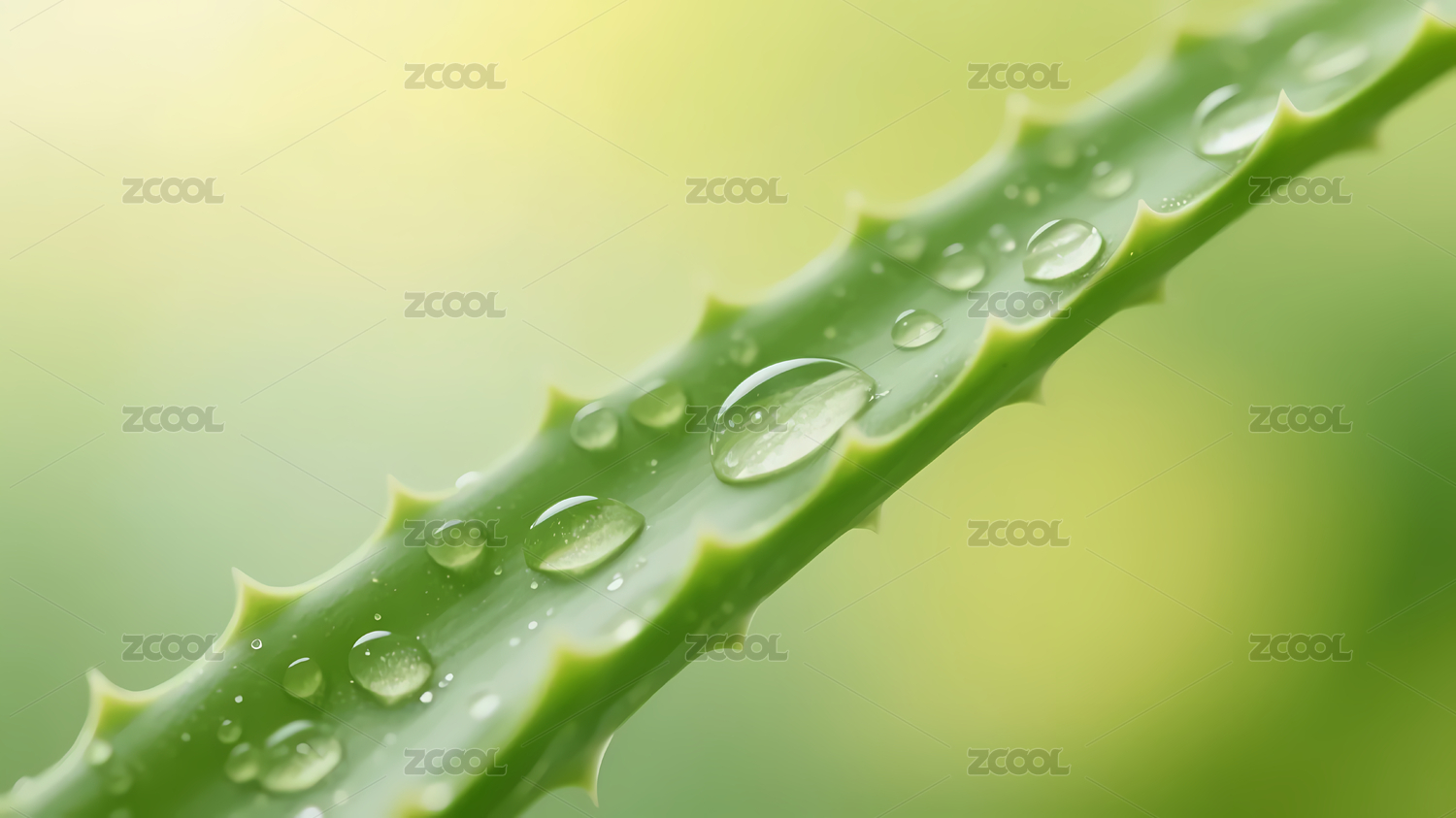 带水珠芦荟叶浅黄调