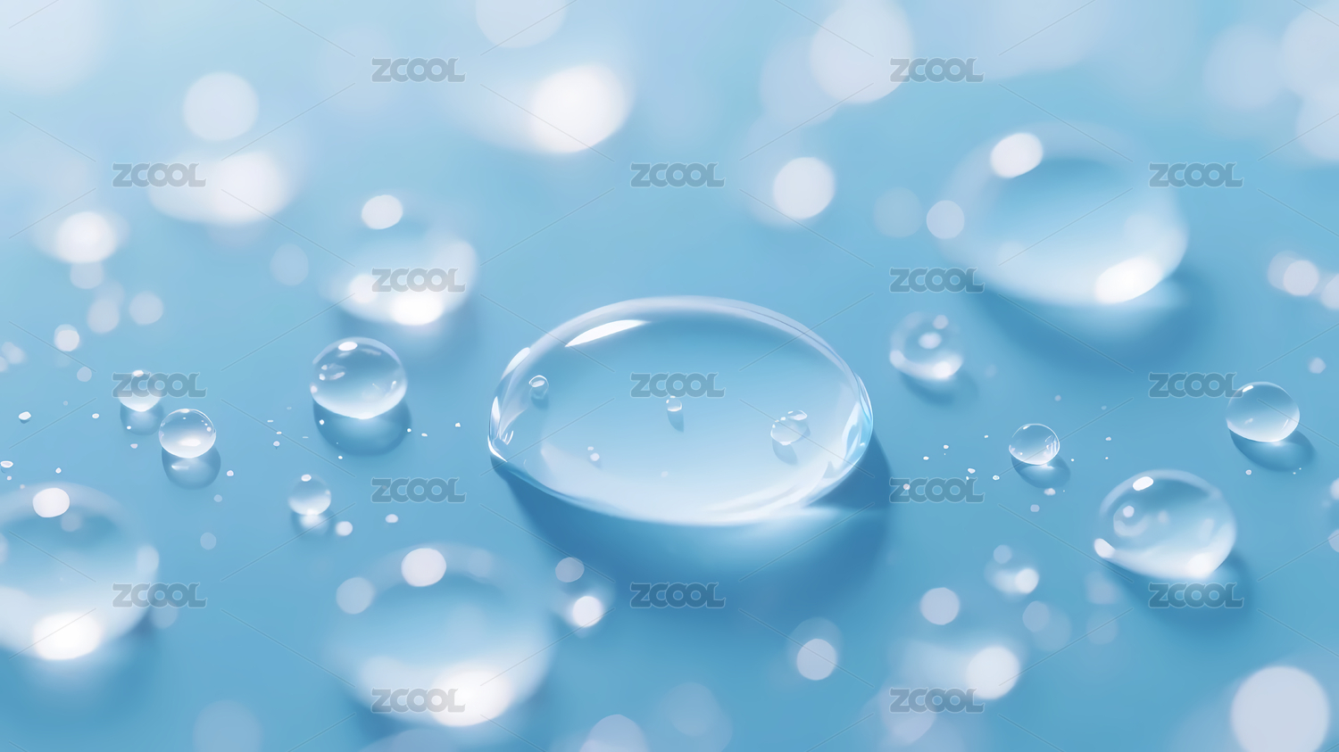 透明水滴浅蓝渐变背景