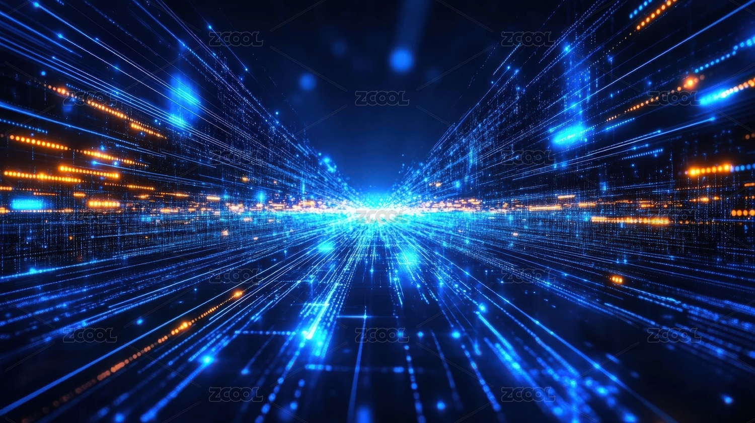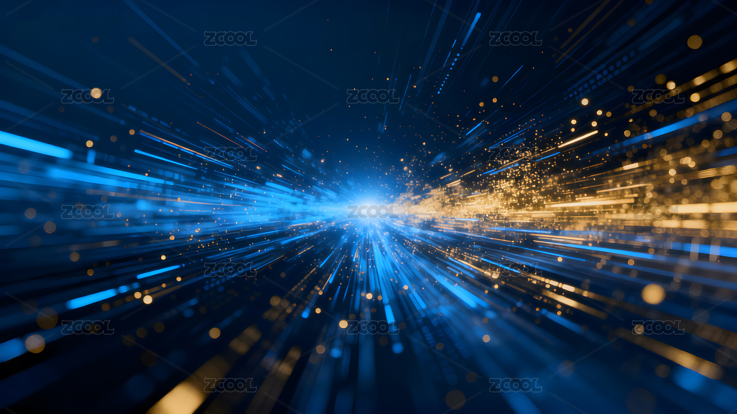 蓝色能量粒子隧道模糊散景发光明亮抽象背景