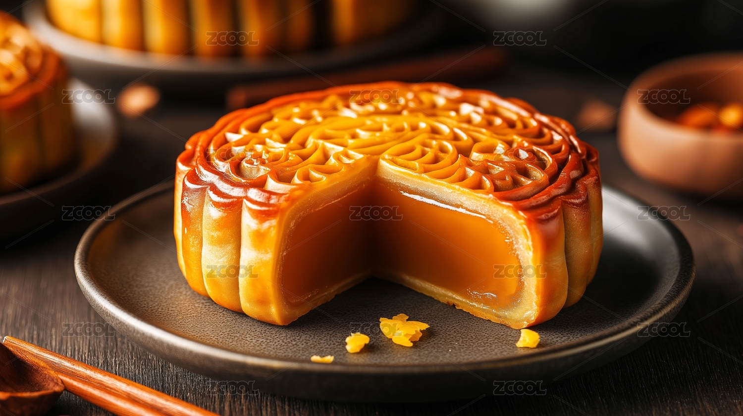 中秋月饼特写金黄诱人