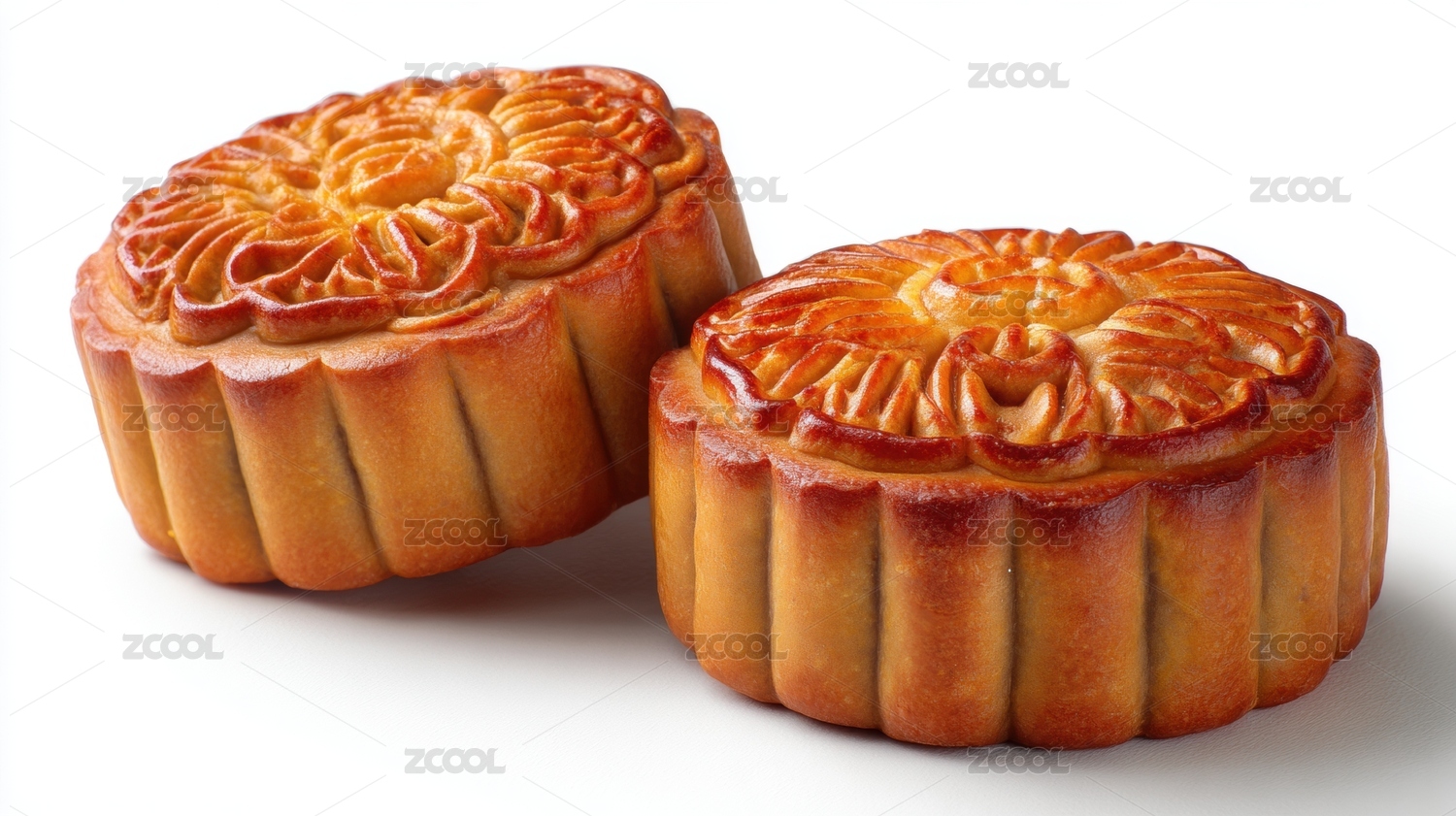 白底特写传统花纹月饼美食摄影