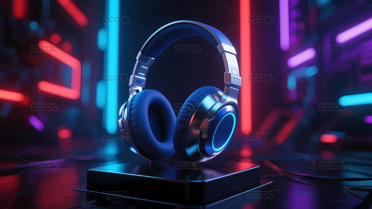 时尚炫酷的摇滚音乐耳麦炫彩壁纸